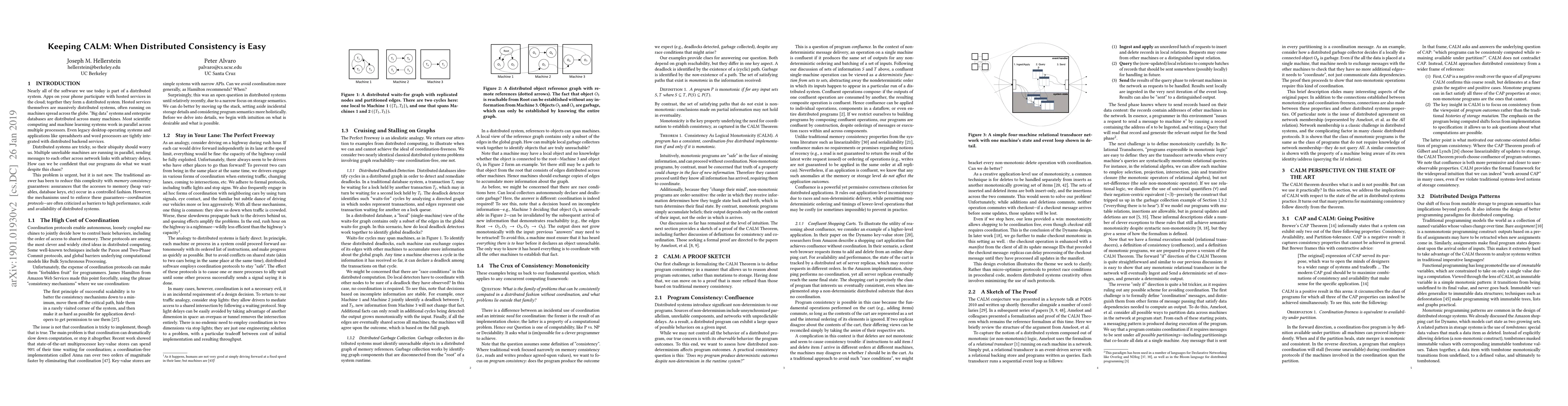 A key concern in modern distributed systems is to avoid the cost of coordination while maintaining consistent semantics. Until recently, there was no answer to the question of when coordination is actually required. In this paper we present an informal introduction to the CALM Theorem, which answers this question precisely by moving up from traditional storage consistency to consider properties of programs. CALM is an acronym for "consistency as logical monotonicity". The CALM Theorem shows that the programs that have consistent, coordination-free distributed implementations are exactly the programs that can be expressed in monotonic logic. This theoretical result has practical implications for developers of distributed applications. We show how CALM provides a constructive application-level counterpart to conventional "systems" wisdom, such as the apparently negative results of the CAP Theorem. We also discuss ways that monotonic thinking can influence distributed systems design, and how new programming language designs and tools can help developers write consistent, coordination-free code.
