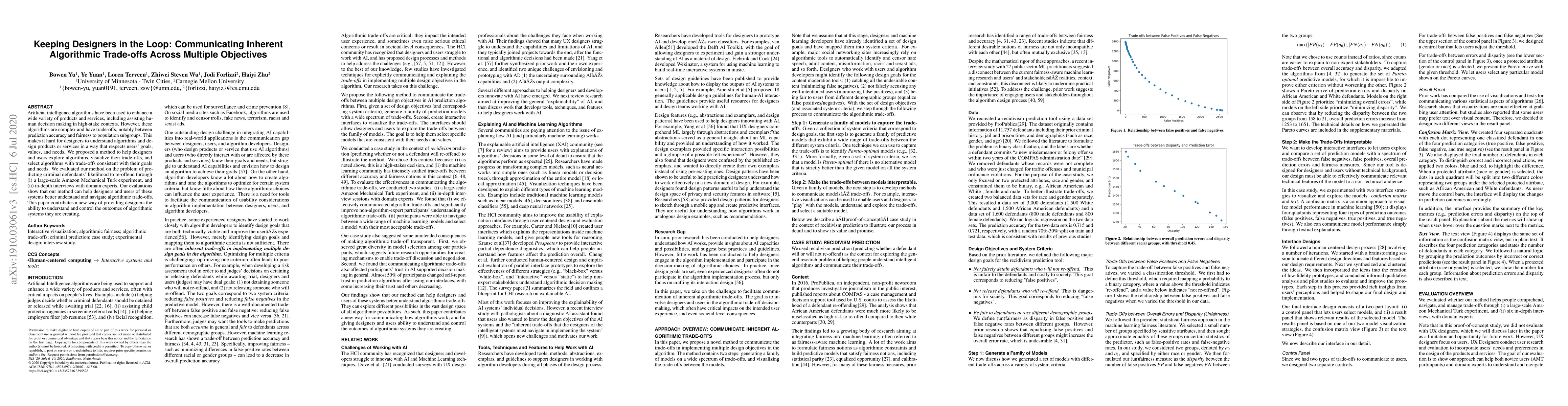 Artificial intelligence algorithms have been used to enhance a wide variety of products and services, including assisting human decision making in high-stakes contexts. However, these algorithms are complex and have trade-offs, notably between prediction accuracy and fairness to population subgroups. This makes it hard for designers to understand algorithms and design products or services in a way that respects users' goals, values, and needs. We proposed a method to help designers and users explore algorithms, visualize their trade-offs, and select algorithms with trade-offs consistent with their goals and needs. We evaluated our method on the problem of predicting criminal defendants' likelihood to re-offend through (i) a large-scale Amazon Mechanical Turk experiment, and (ii) in-depth interviews with domain experts. Our evaluations show that our method can help designers and users of these systems better understand and navigate algorithmic trade-offs. This paper contributes a new way of providing designers the ability to understand and control the outcomes of algorithmic systems they are creating.