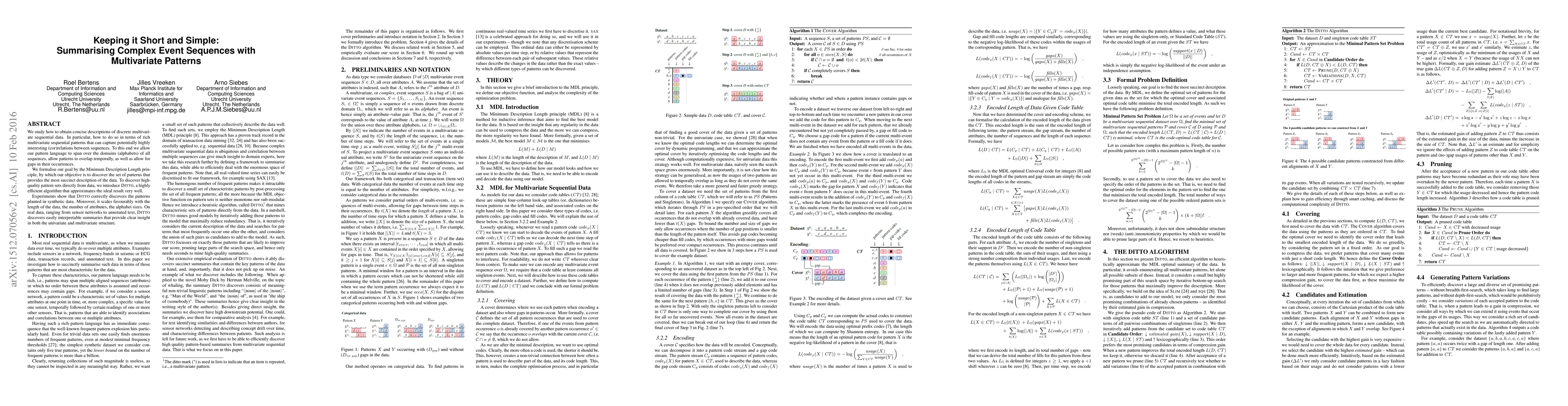 This paper proposes a method for summarising complex multivariate sequential data using overlapping, gap-tolerant patterns. The DITTO algorithm efficiently discovers high-quality pattern sets that provide succinct descriptions of the data, validated by experiments on both synthetic and real datasets.