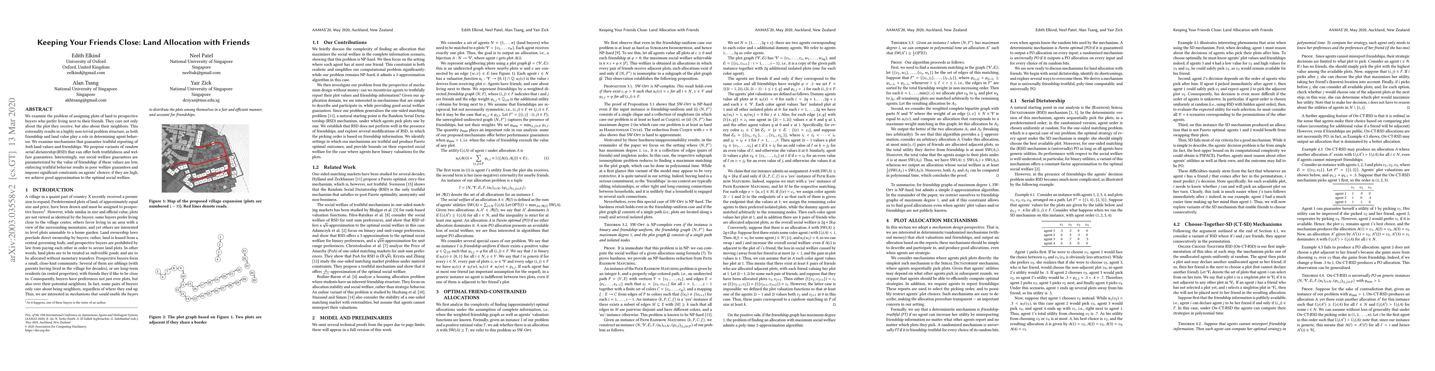 We examine the problem of assigning plots of land to prospective buyers who prefer living next to their friends. They care not only about the plot they receive, but also about their neighbors. This externality results in a highly non-trivial problem structure, as both friendship and land value play a role in determining agent behavior. We examine mechanisms that guarantee truthful reporting of both land values and friendships. We propose variants of random serial dictatorship (RSD) that can offer both truthfulness and welfare guarantees. Interestingly, our social welfare guarantees are parameterized by the value of friendship: if these values are low, enforcing truthful behavior results in poor welfare guarantees and imposes significant constraints on agents' choices; if they are high, we achieve good approximation to the optimal social welfare.