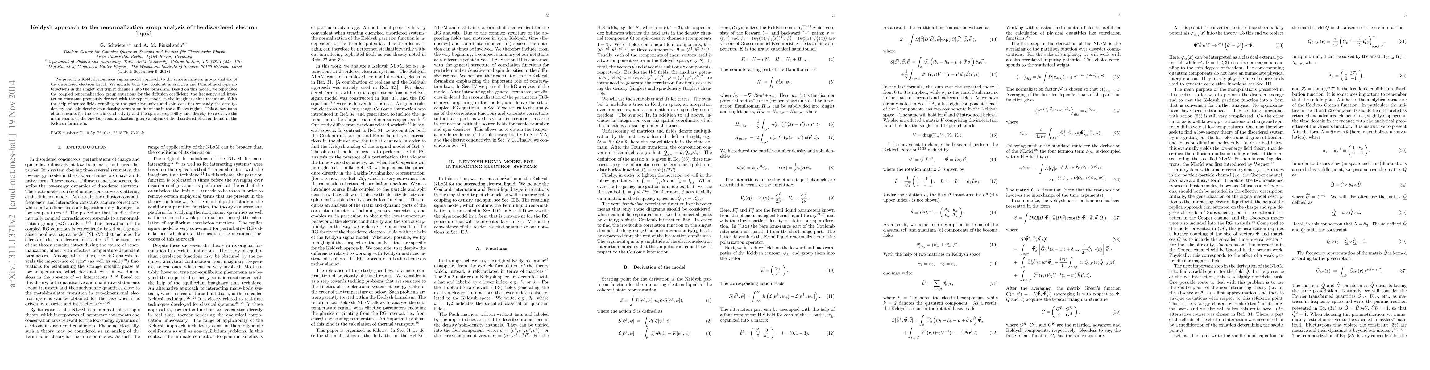 This paper employs a Keldysh nonlinear sigma-model to analyze the renormalization group of disordered electron liquids, incorporating both Coulomb and Fermi-liquid interactions. It derives coupled renormalization group equations for diffusion, frequency, and interaction constants, and calculates electric conductivity and spin susceptibility in the diffusive regime.
