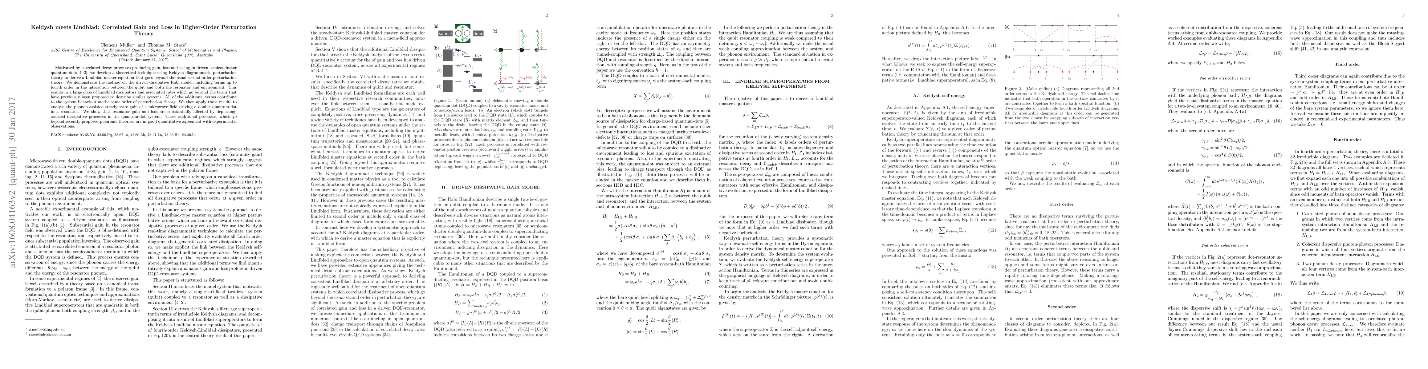 Motivated by correlated decay processes producing gain, loss and lasing in driven semiconductor quantum-dots, we develop a theoretical technique using Keldysh diagrammatic perturbation theory to derive a Lindblad master equation that goes beyond the usual second order perturbation theory. We demonstrate the method on the driven dissipative Rabi model, including terms up to fourth order in the interaction between the qubit and both the resonator and environment. This results in a large class of Lindblad dissipators and associated rates which go beyond the terms that have previously been proposed to describe similar systems. All of the additional terms contribute to the system behaviour at the same order of perturbation theory. We then apply these results to analyse the phonon-assisted steady-state gain of a microwave field driving a double quantum-dot in a resonator. We show that resonator gain and loss are substantially affected by dephasing-assisted dissipative processes in the quantum-dot system. These additional processes, which go beyond recently proposed polaronic theories, are in good quantitative agreement with experimental observations.