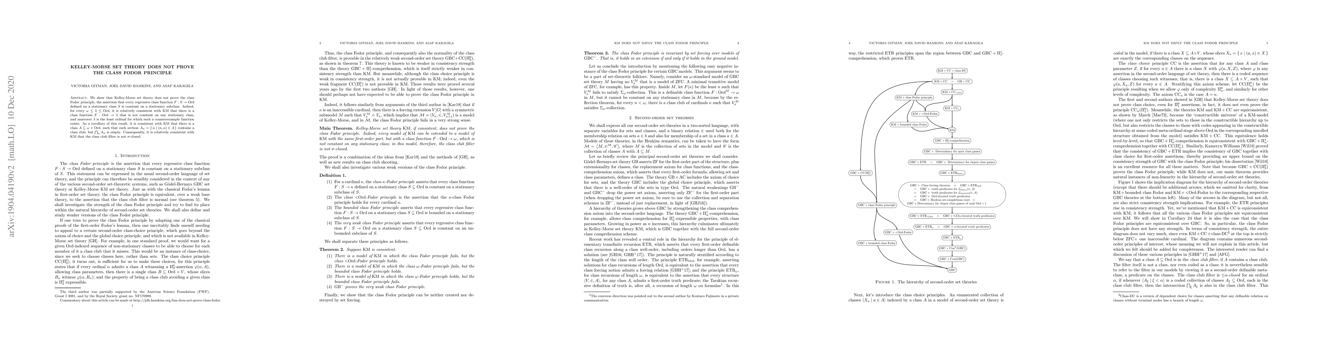 The paper employs Kelley-Morse set theory (KM) and class forcing techniques to analyze the class Fodor principle.