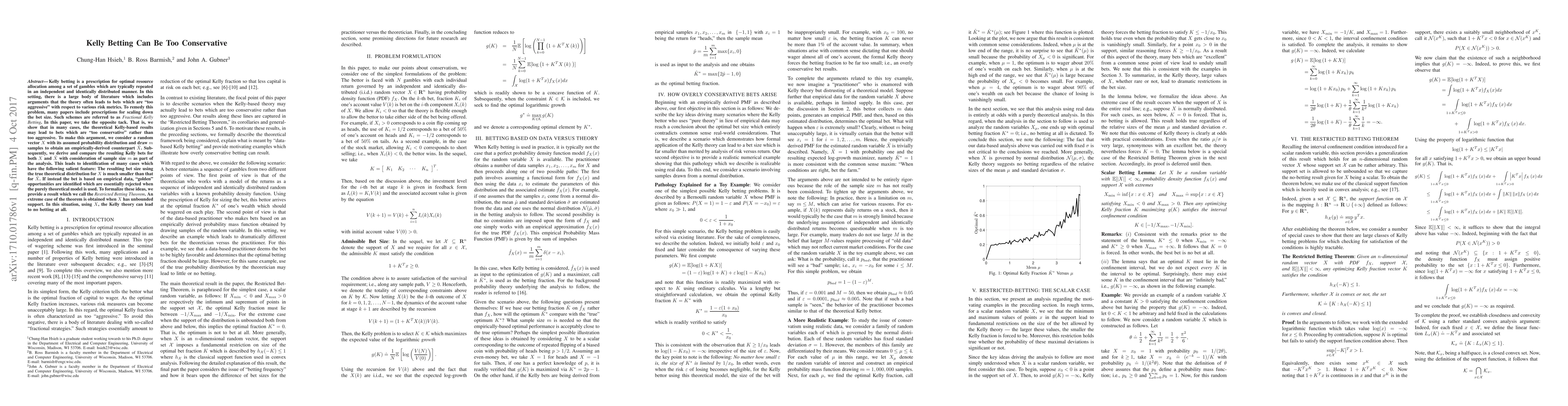 Kelly betting is a prescription for optimal resource allocation among a set of gambles which are typically repeated in an independent and identically distributed manner. In this setting, there is a large body of literature which includes arguments that the theory often leads to bets which are "too aggressive" with respect to various risk metrics. To remedy this problem, many papers include prescriptions for scaling down the bet size. Such schemes are referred to as Fractional Kelly Betting. In this paper, we take the opposite tack. That is, we show that in many cases, the theoretical Kelly-based results may lead to bets which are "too conservative" rather than too aggressive. To make this argument, we consider a random vector X with its assumed probability distribution and draw m samples to obtain an empirically-derived counterpart Xhat. Subsequently, we derive and compare the resulting Kelly bets for both X and Xhat with consideration of sample size m as part of the analysis. This leads to identification of many cases which have the following salient feature: The resulting bet size using the true theoretical distribution for X is much smaller than that for Xhat. If instead the bet is based on empirical data, "golden" opportunities are identified which are essentially rejected when the purely theoretical model is used. To formalize these ideas, we provide a result which we call the Restricted Betting Theorem. An extreme case of the theorem is obtained when X has unbounded support. In this situation, using X, the Kelly theory can lead to no betting at all.