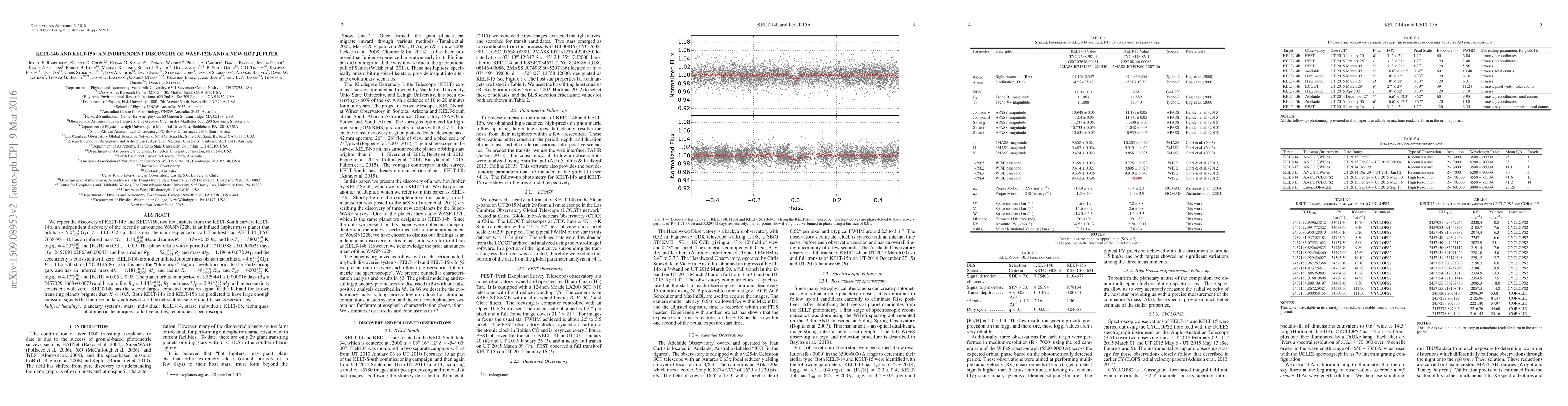 This paper reports the discovery of two hot Jupiters, KELT-14b and KELT-15b, identified through the KELT-South survey. KELT-14b is an independent discovery of WASP-122b, orbiting a G2 star near the main sequence turnoff, while KELT-15b orbits a G0 star near the "blue hook" stage. Both planets have inflated Jupiter masses and radii, with KELT-14b showing a strong emission signal in the K-band.