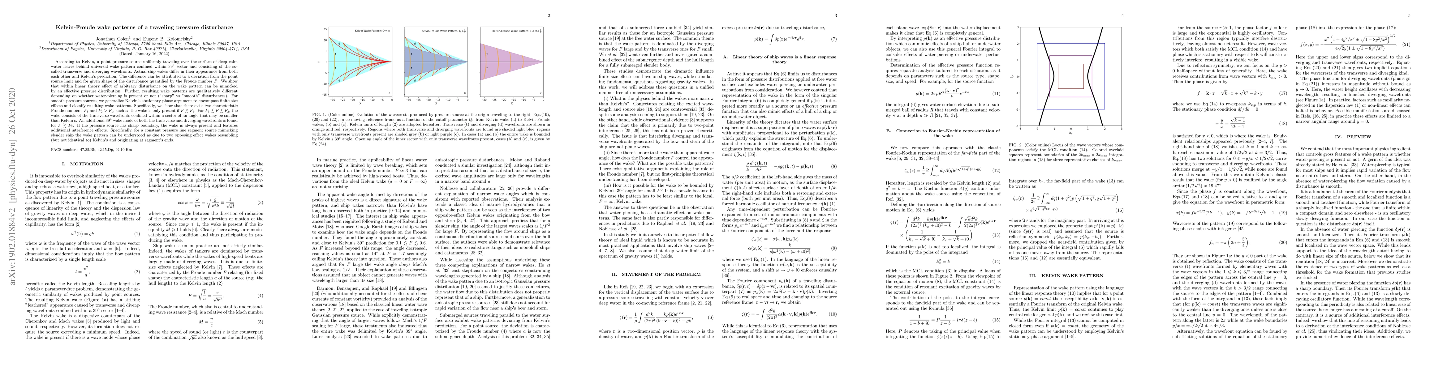 Researchers studied ship wakes, finding that wake patterns depend on Froude number and disturbance shape, leading to different wake types for sharp vs smooth pressure sources.