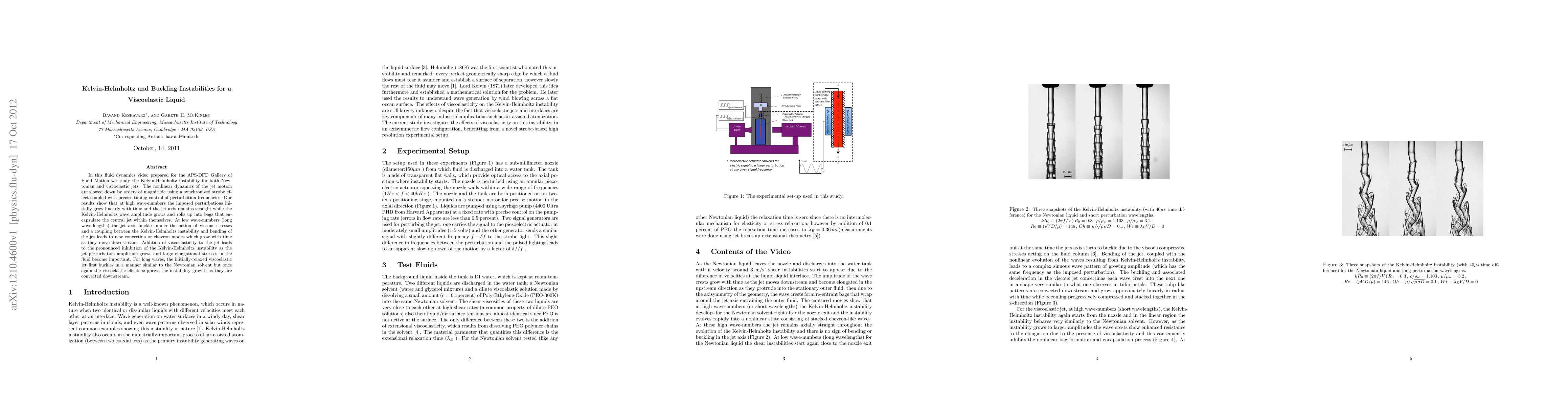 This study investigates the Kelvin-Helmholtz and buckling instabilities in viscoelastic and Newtonian jets using synchronized strobe effects. It finds that viscoelasticity inhibits Kelvin-Helmholtz instability, while long-wavelength perturbations lead to buckling and new concertina modes in both types of jets.