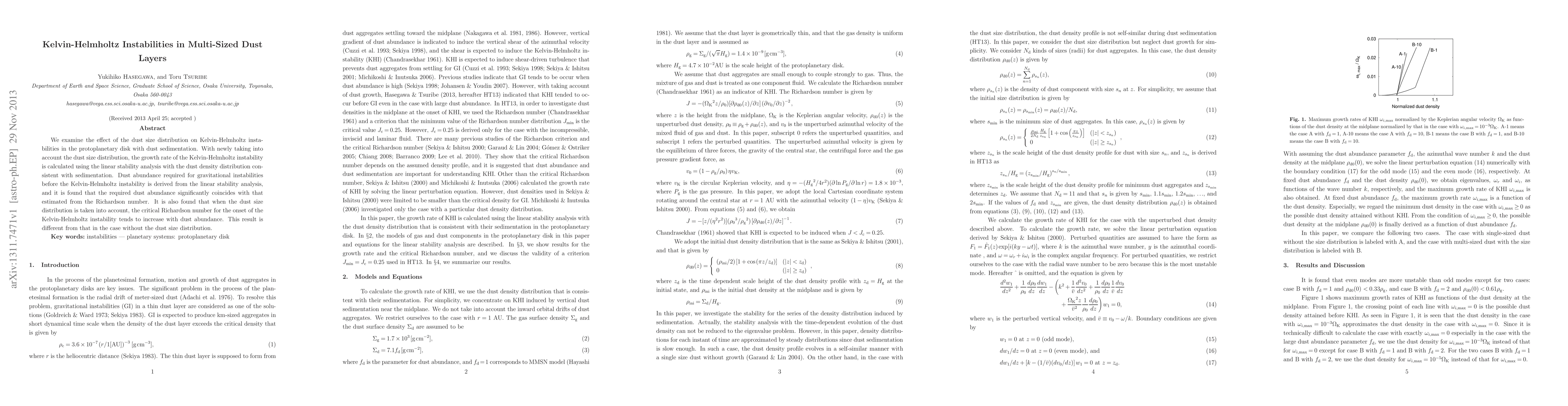 This study investigates how varying dust size distributions affect Kelvin-Helmholtz instabilities in protoplanetary disks, finding that the growth rate and critical Richardson number for instability onset increase with dust abundance when dust size is considered, contrasting with scenarios ignoring size distribution.