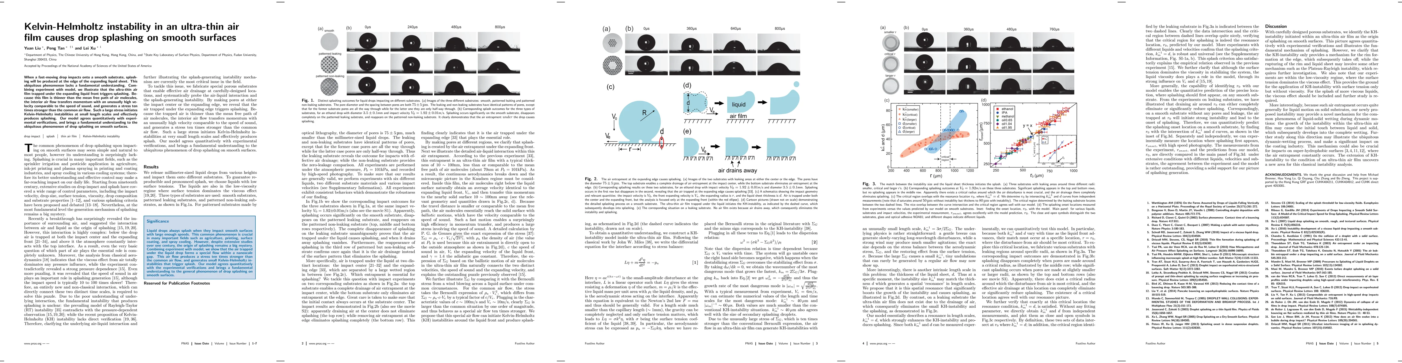 This study reveals that Kelvin Helmholtz instability in an ultrathin air film beneath an expanding liquid sheet causes drop splashing on smooth surfaces. The high-velocity airflow within the thin film generates stress that initiates instabilities, leading to splashing, as demonstrated by a model that matches experimental results.