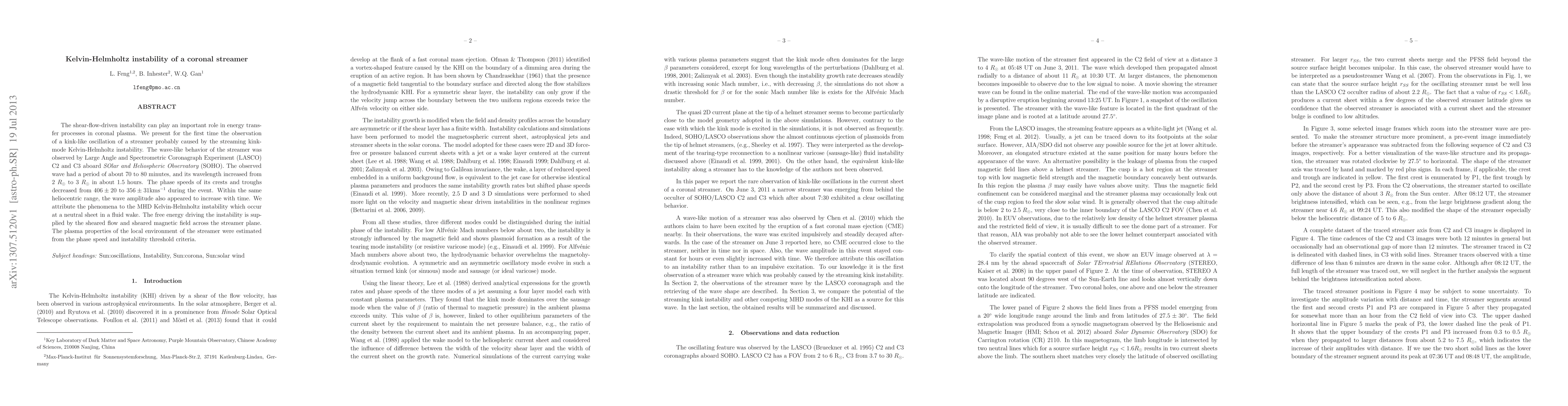This paper reports the first observation of a streamer's kink-like oscillation caused by the Kelvin-Helmholtz instability, observed by SOHO's LASCO instruments. The instability, driven by sheared flow and magnetic fields, exhibited a wave-like behavior with a period of 70-80 minutes and increasing amplitude over time.