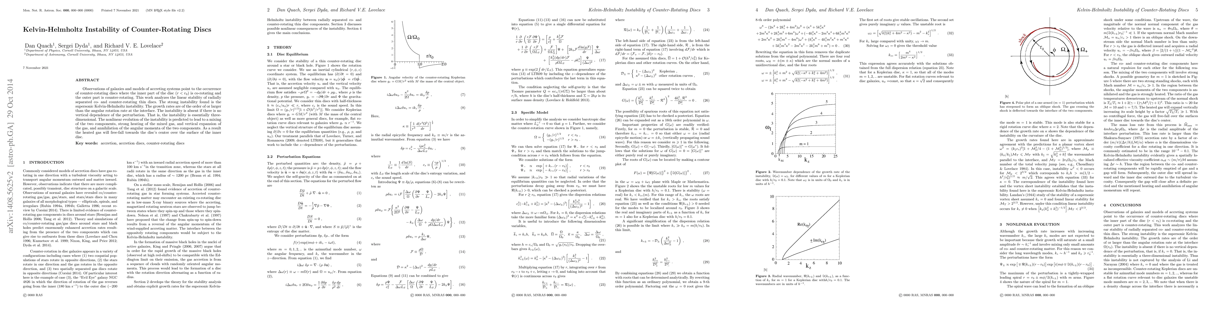 The paper presents a detailed linear stability analysis of radially separated co- and counter-rotating thin discs, identifying the supersonic Kelvin-Helmholtz instability as the dominant mode and predicting its nonlinear consequences.