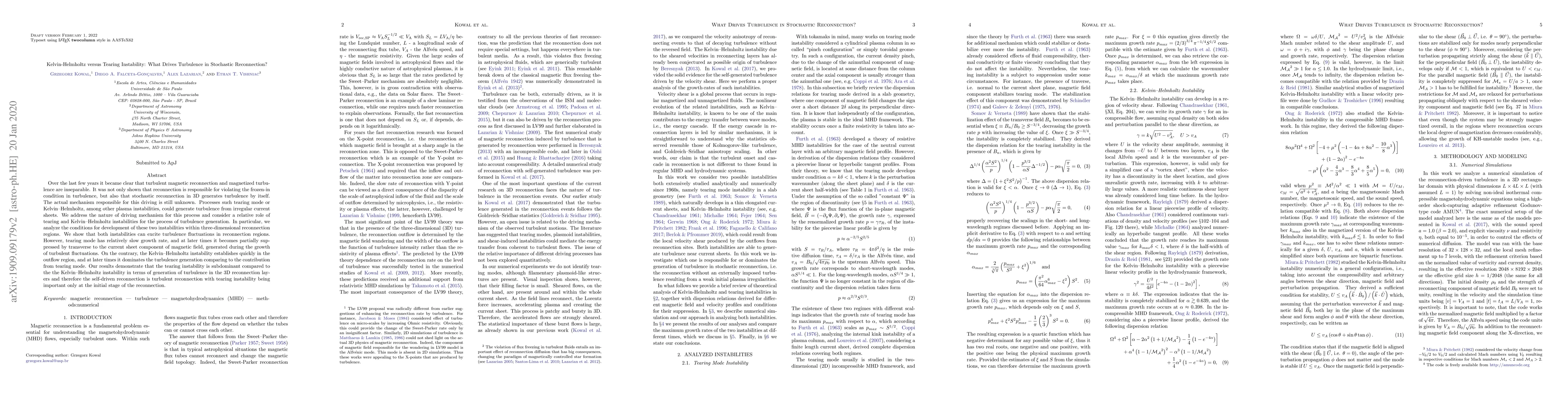 This paper investigates the relative roles of tearing and Kelvin-Helmholtz instabilities in driving turbulence in stochastic magnetic reconnection. It finds that while both instabilities can generate turbulence, the Kelvin-Helmholtz instability dominates later in the process, rendering tearing instability less significant over time.