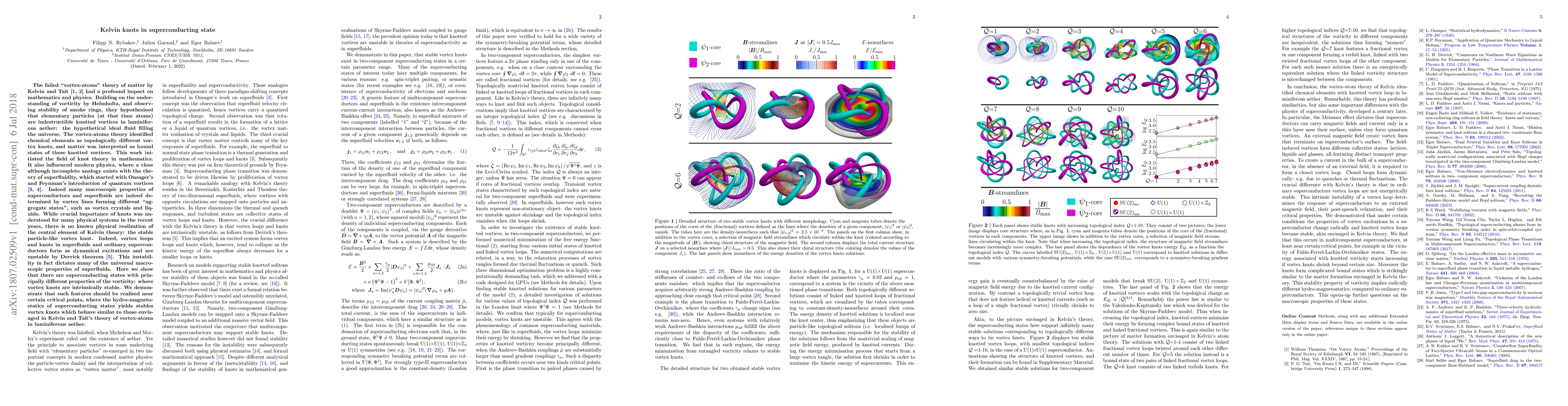 The failed "vortex-atoms" theory of matter by Kelvin and Tait had a profound impact on mathematics and physics. Building on the understanding of vorticity by Helmholtz, and observing stability of smoke rings, they hypothesised that elementary particles (at that time atoms) are indestructible knotted vortices in luminiferous aether: the hypothetical ideal fluid filling the universe. The vortex-atoms theory identified chemical elements as topologically different vortex knots, and matter was interpreted as bound states of these knotted vortices. This work initiated the field of knot theory in mathematics. It also influenced modern physics, where a close although incomplete analogy exists with the theory of superfluidity, which started with Onsager's and Feynman's introduction of quantum vortices. Indeed many macroscopic properties of superconductors and superfluids are indeed determined by vortex lines forming different "aggregate states", such as vortex crystals and liquids. While crucial importance of knots was understood for many physical systems in the recent years, there is no known physical realization of the central element of Kelvin theory: the stable particle-like vortex knot. Indeed, vortex loops and knots in superfluids and ordinary superconductors form as dynamical excitations and are unstable by Derrick theorem. This instability in fact dictates many of the universal macroscopic properties of superfluids. Here we show that there are superconducting states with principally different properties of the vorticity: where vortex knots are intrinsically stable. We demonstrate that such features should be realised near certain critical points, where the hydro-magneto-statics of superconducting states yields stables vortex knots which behave similar to those envisaged in Kelvin and Tait's theory of vortex-atoms in luminiferous aether.