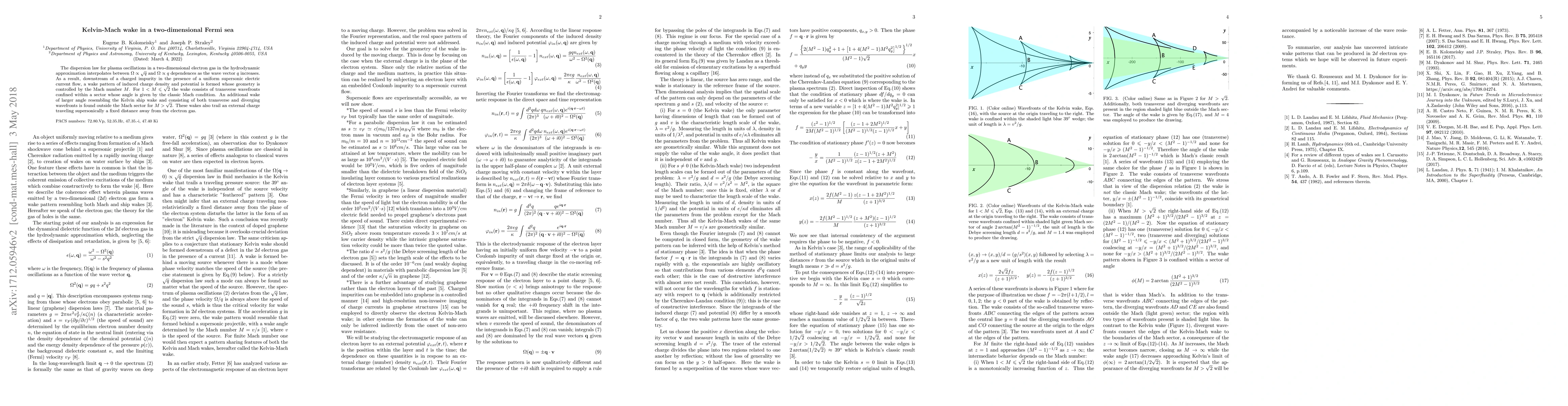 Researchers discovered two wake patterns in a two-dimensional electron gas: a transverse wavefronts confined within a sector for Mach numbers 1 to sqrt(2), and a larger-angle Kelvin ship wake with both transverse and diverging wavefronts for M > sqrt(2).