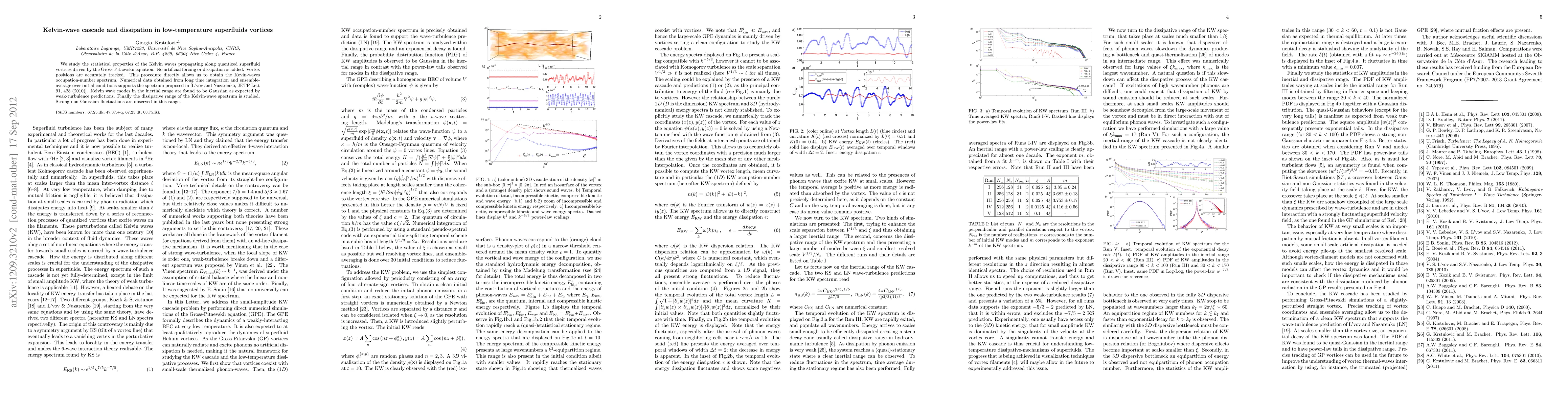 Researchers study Kelvin waves in superfluid vortices, finding Gaussian fluctuations in inertial range but strong non-Gaussian behavior at dissipative range; no artificial forcing or dissipation is used.