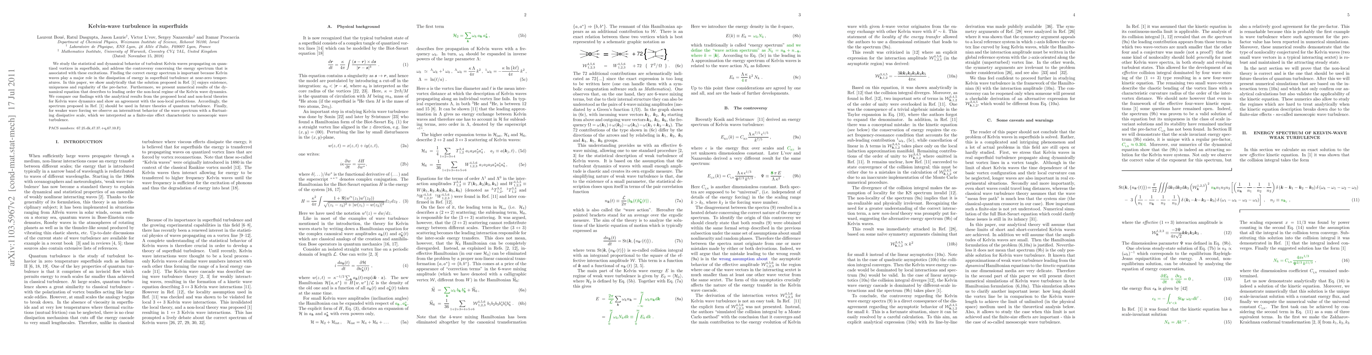 The paper presents a new non-local theory for Kelvin wave energy spectrum, supported by analytical proofs and numerical simulations, resolving previous controversies in the field.