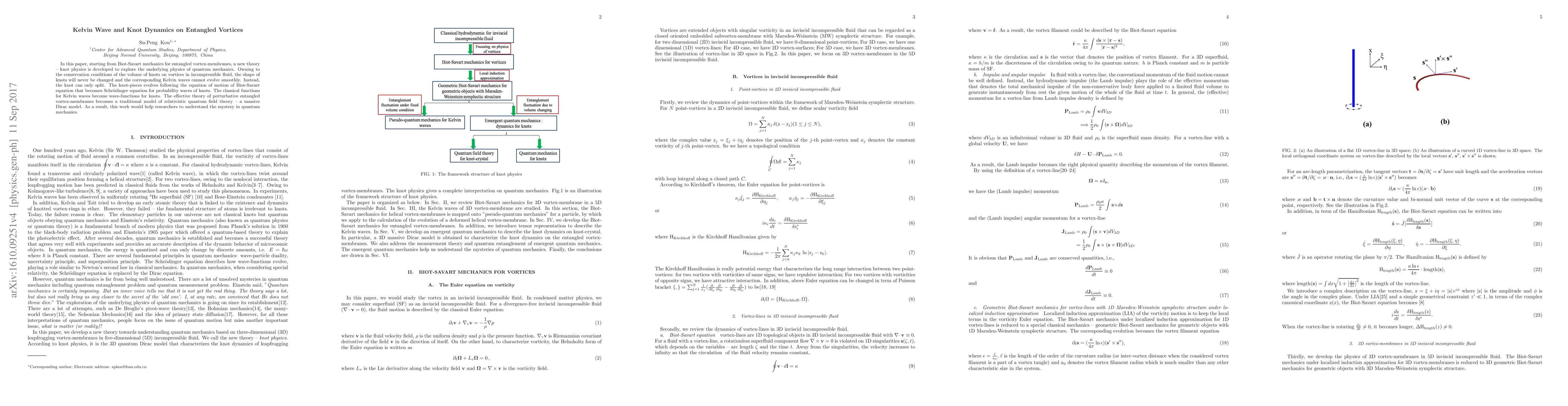 This paper proposes a novel theory called "knot physics" to explore the underlying physics of quantum mechanics through the dynamics of entangled vortex-membranes. It introduces a three-dimensional quantum Dirac model to describe the fluctuations of vortex-membranes, where elementary excitations are represented as dynamic knots with information units.