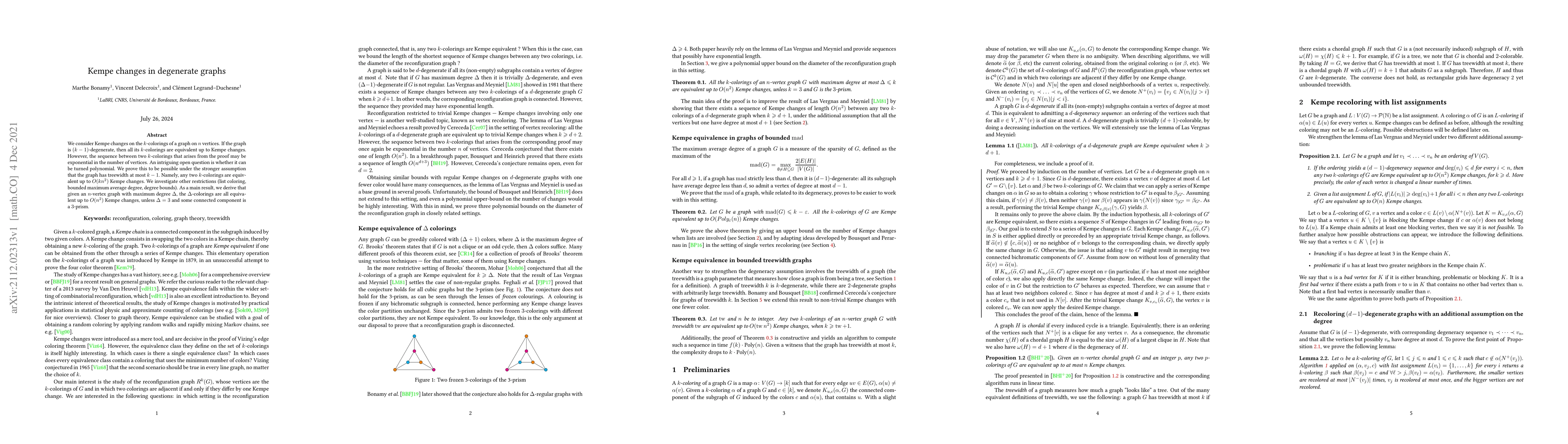 This paper explores Kempe changes in $k$-colorings of $(k-1)$-degenerate graphs, proving that all $k$-colorings are equivalent under $O(kn^2)$ Kempe changes when the graph has treewidth at most $k-1$. It also shows that $\Delta$-colorings of graphs with maximum degree $\Delta$ are equivalent up to $O(n^2)$ Kempe changes, except when $\Delta = 3$ and a component is a 3-prism.