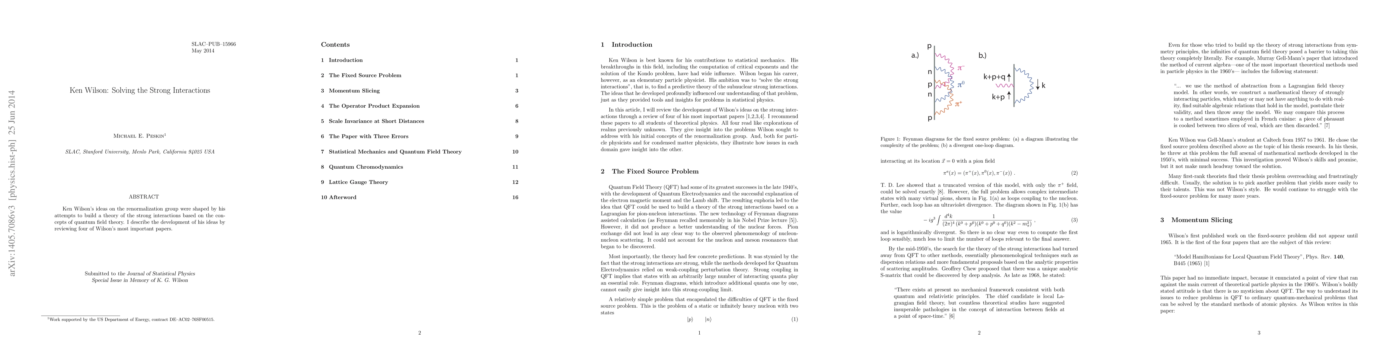 Ken Wilson's ideas on the renormalization group were shaped by his attempts to build a theory of the strong interactions based on the concepts of quantum field theory. I describe the development of his ideas by reviewing four of Wilson's most important papers. [contribution to the Journal of Statistical Physics Special Issue in Memory of K. G. Wilson]
