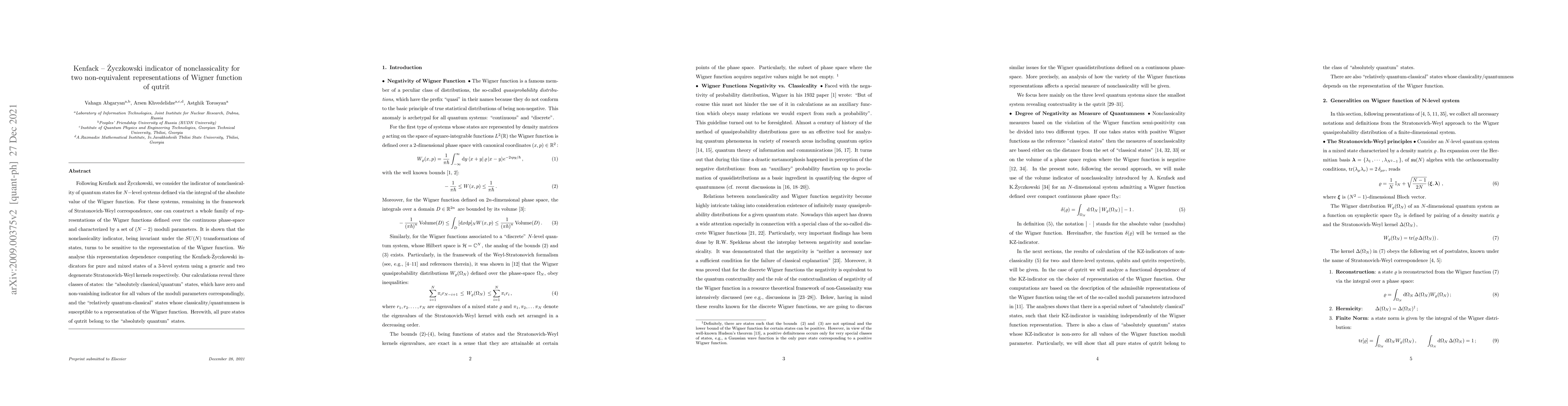 This paper explores the Kenfack-Zyczkowski indicator of nonclassicality for a 3-level quantum system, analyzing different representations of its Wigner function and their implications on quantum state characterization.
