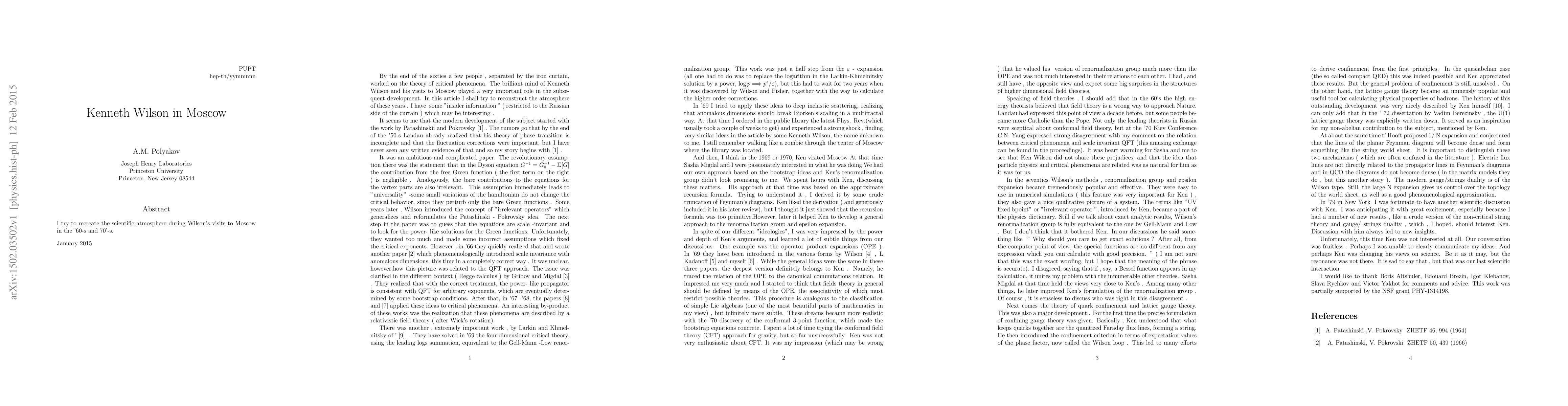 I try to recreate the scientific atmosphere during Wilson's visits to Moscow in '60-s and '70-s