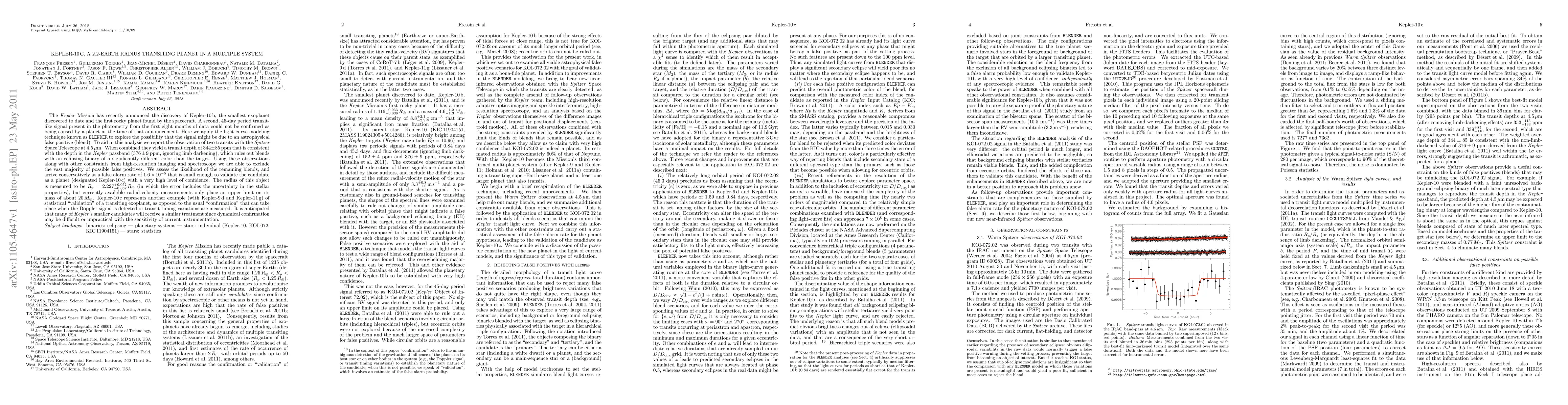 Kepler-10c, a 2.2-Earth radius planet, was statistically validated as an exoplanet using light-curve modeling and Spitzer Space Telescope observations, ruling out false positives with a high confidence level. This method may be necessary for confirming many smaller Kepler candidates due to the difficulty of traditional confirmation techniques.