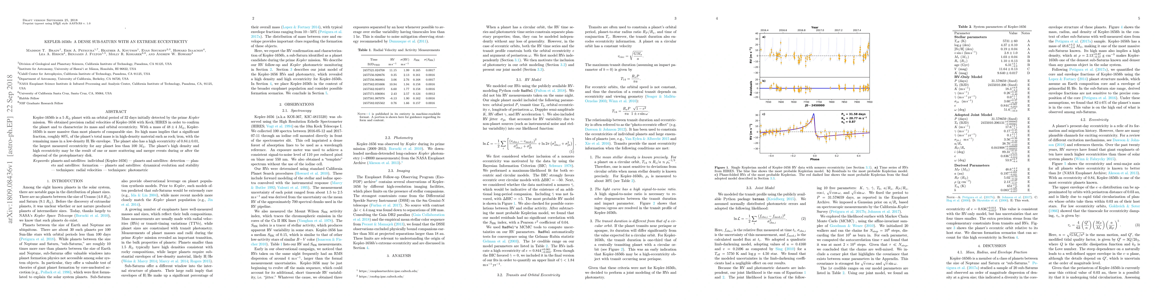 Kepler-1656b is a dense, massive sub-Saturn with a high eccentricity of 0.84, suggesting significant dynamical interactions during its formation. Its high density indicates a substantial rocky/iron composition.