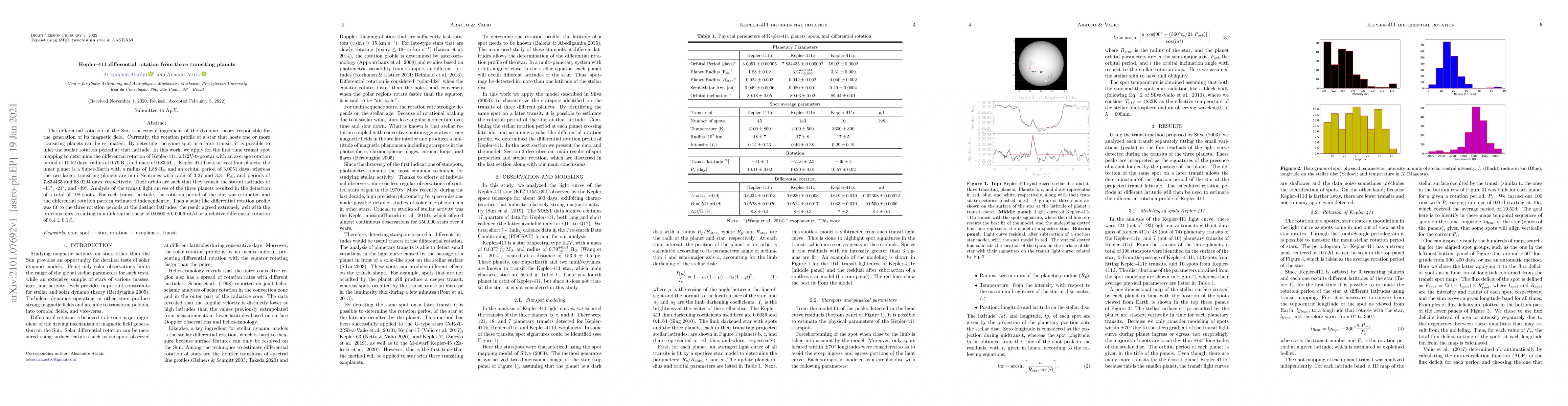 Researchers used transit spot mapping to estimate the differential rotation of Kepler-411, a star with four planets, and found a relative differential rotation of 8.4%.