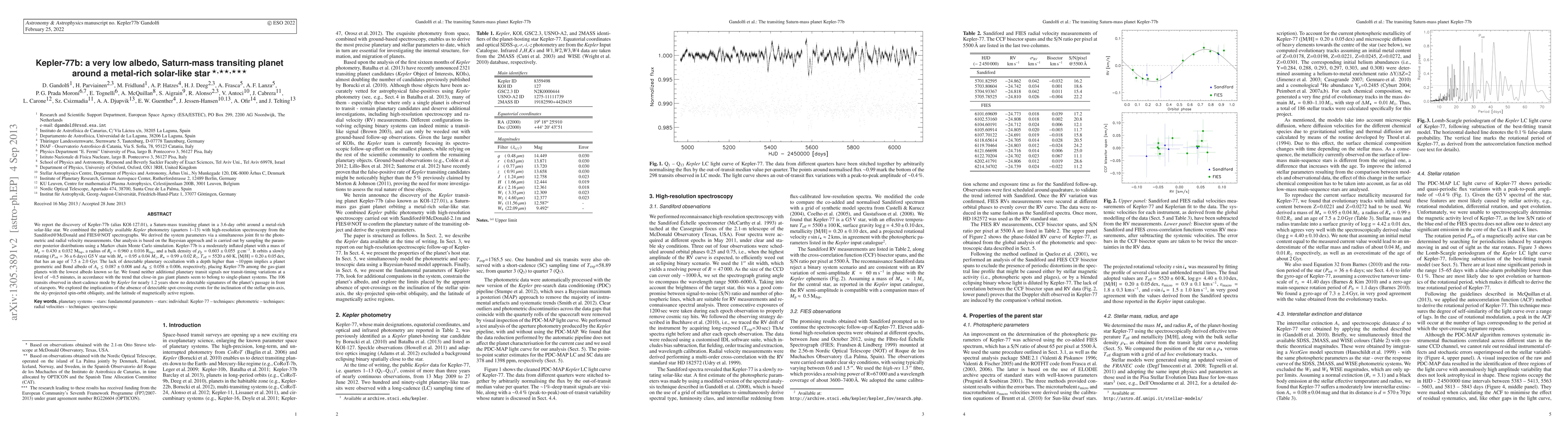 The research paper discovers Kepler-77b, a Saturn-mass planet with a very low albedo around a metal-rich star, using combined photometry and spectroscopy. The findings suggest the planet's geometric and Bond albedo are among the lowest known for gas-giant planets.
