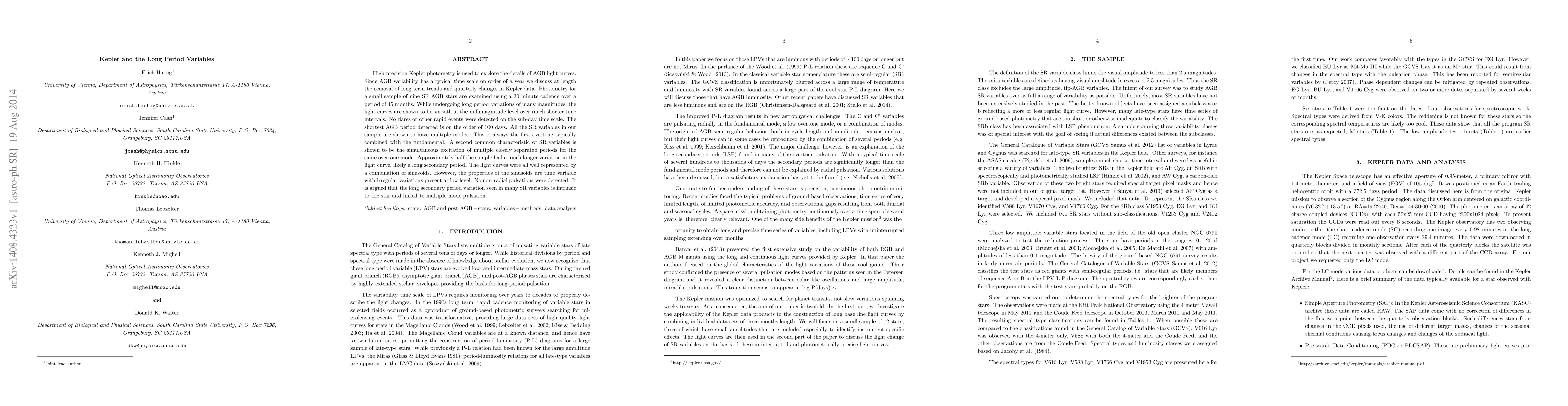 A study using high precision Kepler photometry analyzed light curves of 9 asymptotic giant branch stars, finding that they exhibit smooth variations at the millimagnitude level over shorter time intervals, with periods ranging from 100 days to a year.