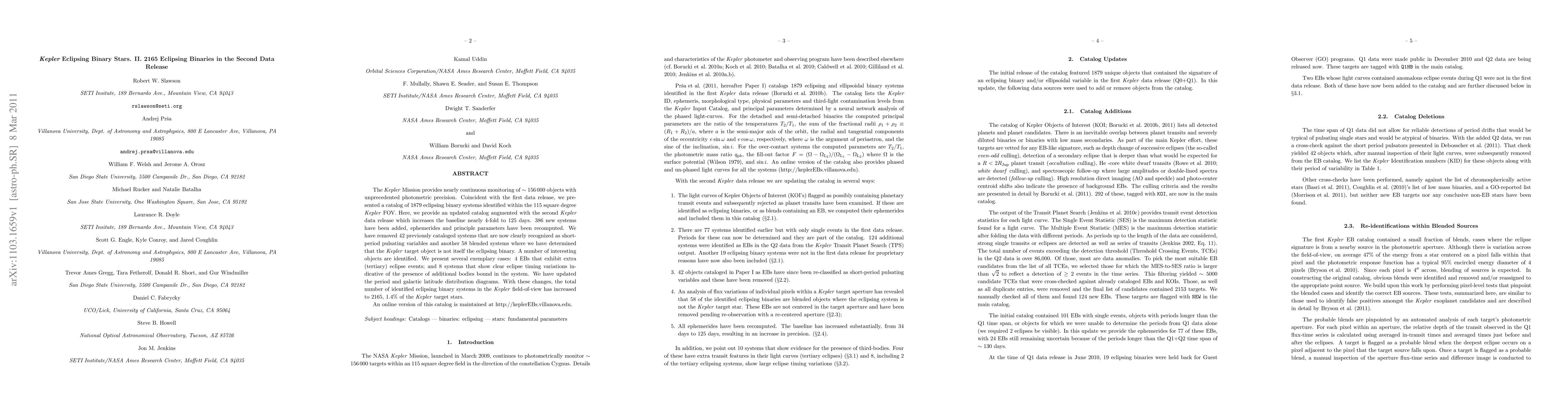 This paper updates the catalog of eclipsing binary stars from the Kepler Mission, adding 386 new systems identified in the second data release. The total count now stands at 2165, with recomputed parameters and identification of additional complex systems including those with tertiary eclipses and eclipse timing variations.