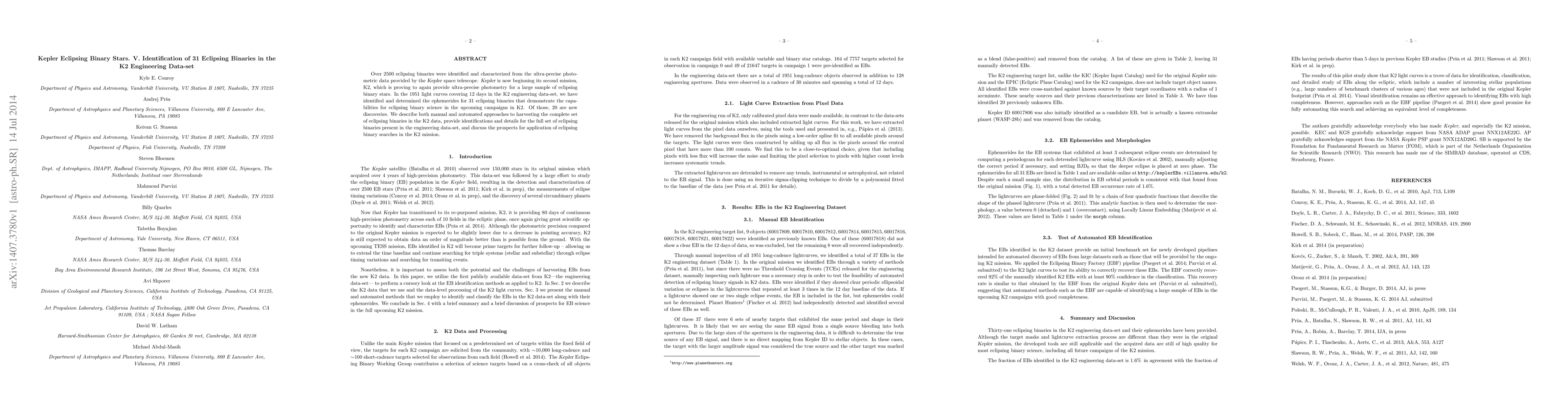 This paper identifies 31 eclipsing binaries from the K2 engineering data-set of the Kepler space telescope, including 20 new discoveries. It details both manual and automated methods used to characterize these binaries and discusses the potential for future eclipsing binary searches in the K2 mission.