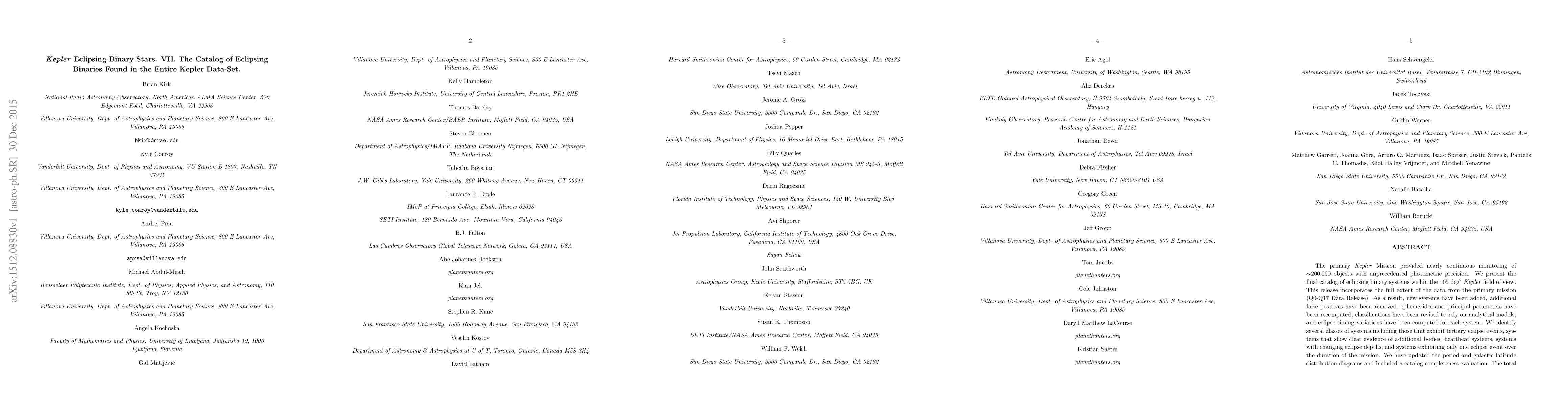 The Kepler Mission's final catalog of eclipsing binary systems includes 2878 systems, representing 1.3% of all observed targets, with refined classifications, recomputed parameters, and updated eclipse timing variations. The catalog also features systems with tertiary eclipses, additional bodies, and heartbeat phenomena.