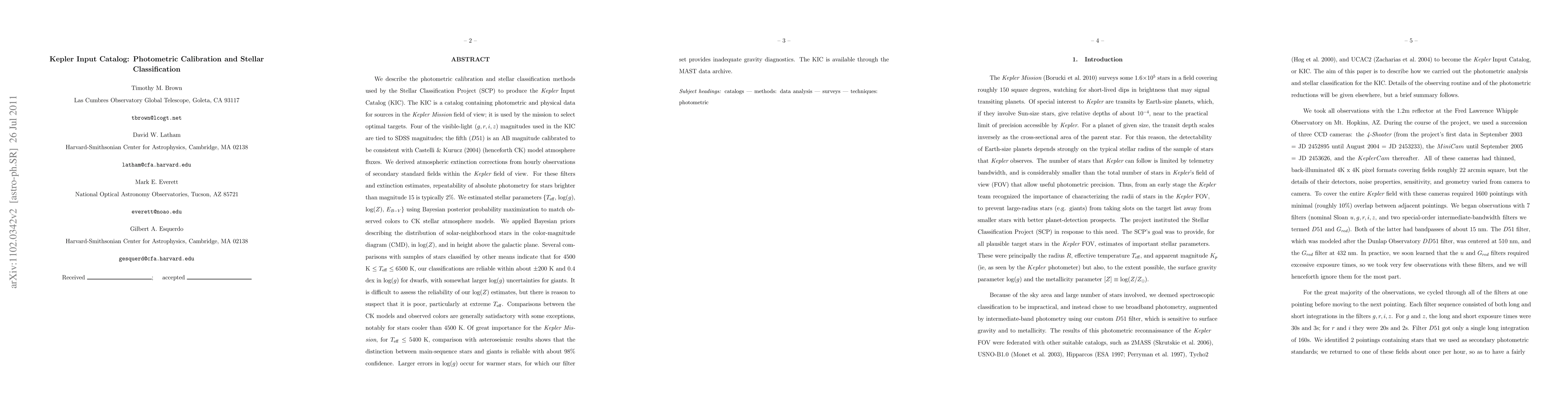 The paper details the photometric calibration and stellar classification methods used to create the Kepler Input Catalog (KIC), which provides essential data for the Kepler Mission. The authors achieved high accuracy in photometric calibration and stellar parameter estimation, ensuring reliable classification of stars, especially in distinguishing main-sequence stars from giants with over 98% confidence.
