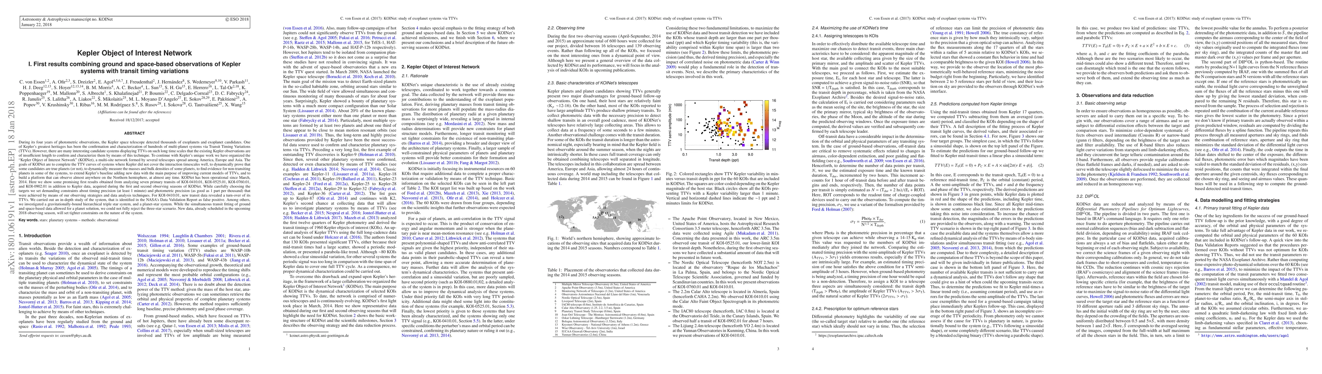 During its four years of photometric observations, the Kepler space telescope detected thousands of exoplanets and exoplanet candidates. One of Kepler's greatest heritages has been the confirmation and characterization of hundreds of multi-planet systems via Transit Timing Variations (TTVs). However, there are many interesting candidate systems displaying TTVs on such long time scales that the existing Kepler observations are of insufficient length to confirm and characterize them by means of this technique. To continue with Kepler's unique work we have organized the "Kepler Object of Interest Network" (KOINet). The goals of KOINet are, among others, to complete the TTV curves of systems where Kepler did not cover the interaction timescales well. KOINet has been operational since March, 2014. Here we show some promising first results obtained from analyzing seven primary transits of KOI-0410.01, KOI-0525.01, KOI-0760.01, and KOI-0902.01 in addition to Kepler data, acquired during the first and second observing seasons of KOINet. While carefully choosing the targets we set demanding constraints about timing precision (at least 1 minute) and photometric precision (as good as 1 part per thousand) that were achieved by means of our observing strategies and data analysis techniques. For KOI-0410.01, new transit data revealed a turn-over of its TTVs. We carried out an in-depth study of the system, that is identified in the NASA's Data Validation Report as false positive. Among others, we investigated a gravitationally-bound hierarchical triple star system, and a planet-star system. While the simultaneous transit fitting of ground and space-based data allowed for a planet solution, we could not fully reject the three-star scenario. New data, already scheduled in the upcoming 2018 observing season, will set tighter constraints on the nature of the system.