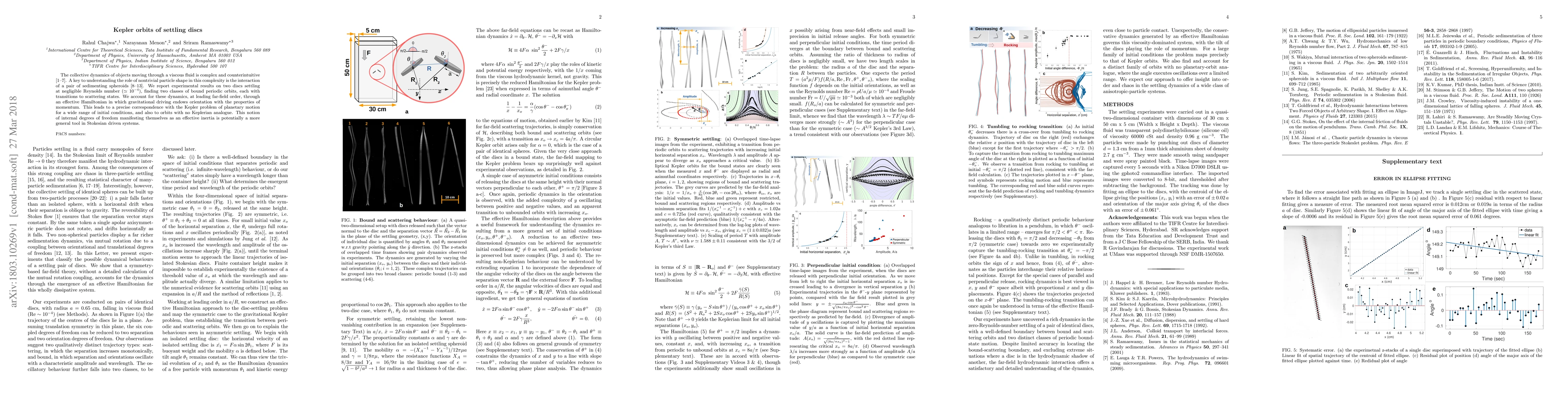This paper reports experimental findings on the settling dynamics of two discs in a viscous fluid, revealing two classes of bound periodic orbits and transitions to scattering states. The study introduces an effective Hamiltonian that parallels the Kepler problem, demonstrating how gravitational forces can endow orientation with momentum-like properties in driven Stokesian systems.