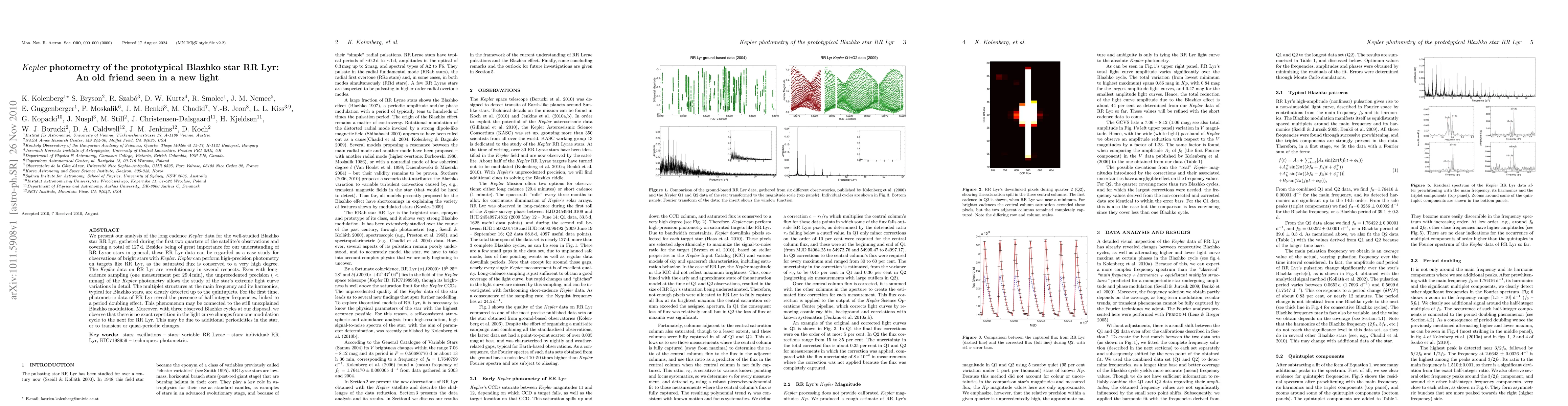 This study analyzes long-cadence Kepler data for RR Lyr, revealing unprecedented precision in the star's light curve variations and detecting multiplet structures up to quintuplets. The data also identify half-integer frequencies linked to a period doubling effect, potentially connected to the Blazhko modulation, and show variability in Blazhko cycles, suggesting additional periodicities or transient changes.