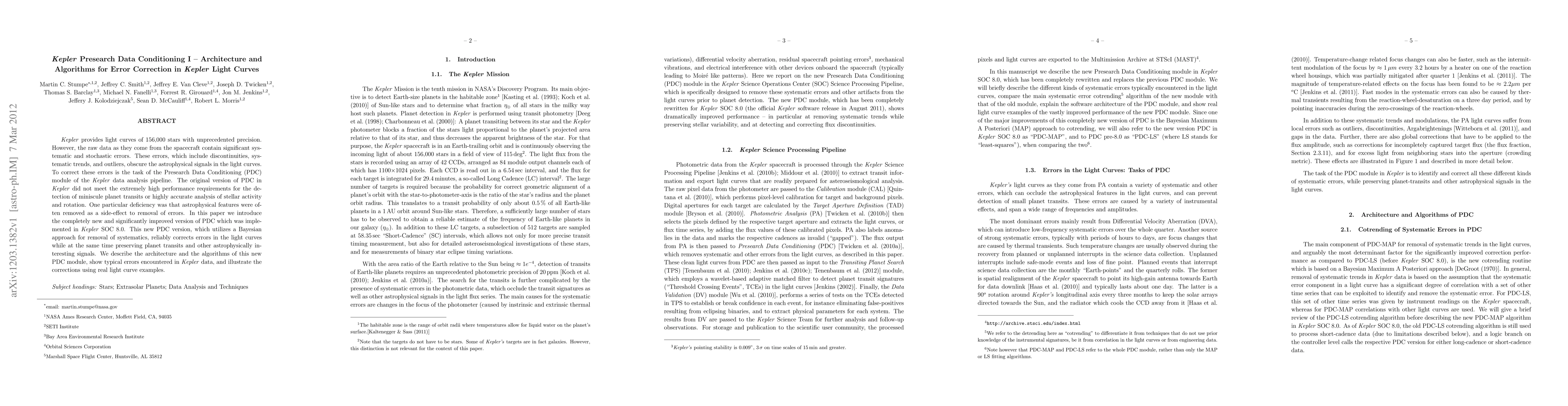 Kepler provides light curves of 156,000 stars with unprecedented precision. However, the raw data as they come from the spacecraft contain significant systematic and stochastic errors. These errors, which include discontinuities, systematic trends, and outliers, obscure the astrophysical signals in the light curves. To correct these errors is the task of the Presearch Data Conditioning (PDC) module of the Kepler data analysis pipeline. The original version of PDC in Kepler did not meet the extremely high performance requirements for the detection of miniscule planet transits or highly accurate analysis of stellar activity and rotation. One particular deficiency was that astrophysical features were often removed as a side-effect to removal of errors. In this paper we introduce the completely new and significantly improved version of PDC which was implemented in Kepler SOC 8.0. This new PDC version, which utilizes a Bayesian approach for removal of systematics, reliably corrects errors in the light curves while at the same time preserving planet transits and other astrophysically interesting signals. We describe the architecture and the algorithms of this new PDC module, show typical errors encountered in Kepler data, and illustrate the corrections using real light curve examples.