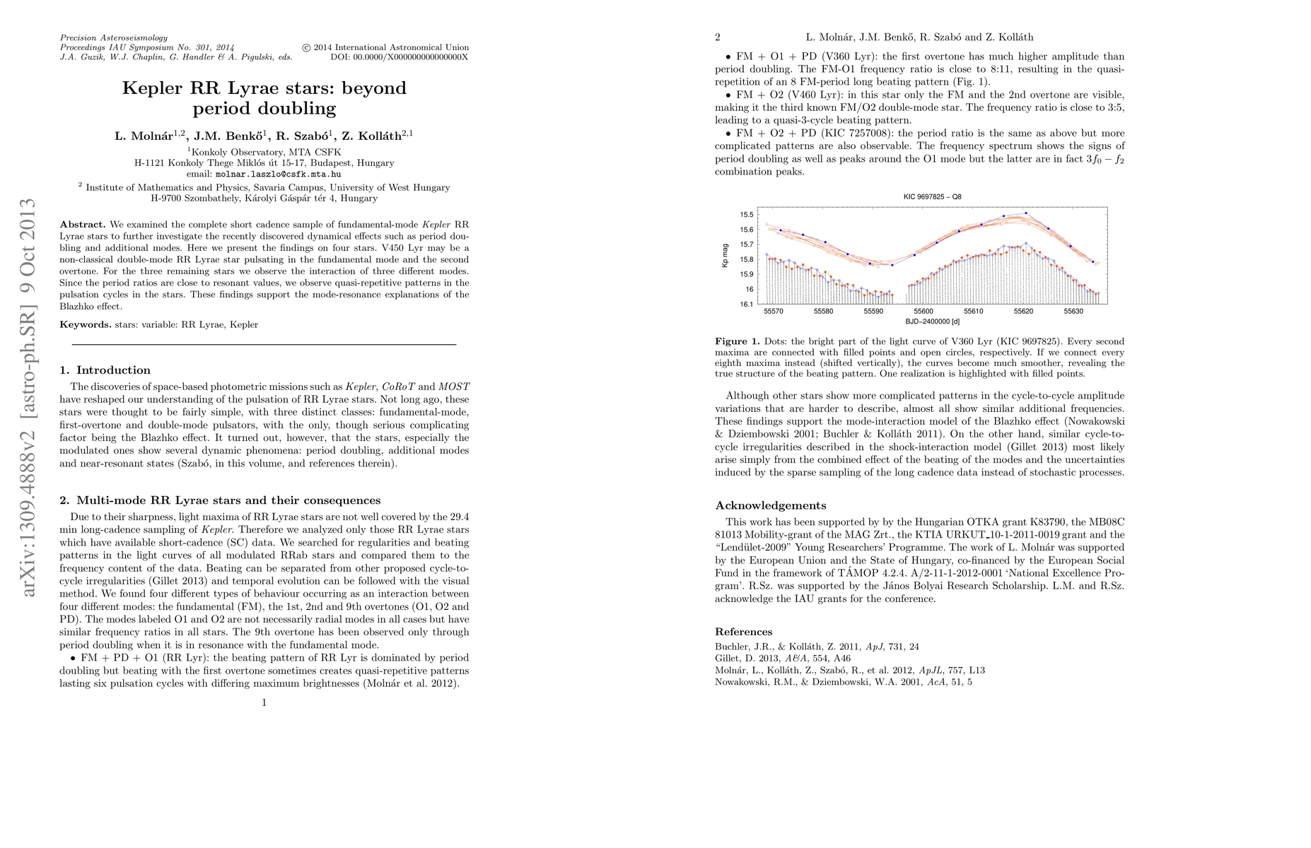 We examined the complete short cadence sample of Kepler RR Lyrae stars to further investigate the recently discovered dynamical effects such as period doubling and additional modes. Here we present the findings on four stars. V450 Lyr may be a non-classical double-mode RR Lyrae star pulsating in the fundamental mode and the second overtone. In three cases we observe the interaction of three different modes. Since the period ratios are close to resonant values, we observe quasi-repetiting patterns in the pulsation cycles in the stars. These findings support the mode-resonance explanations of the Blazhko effect.