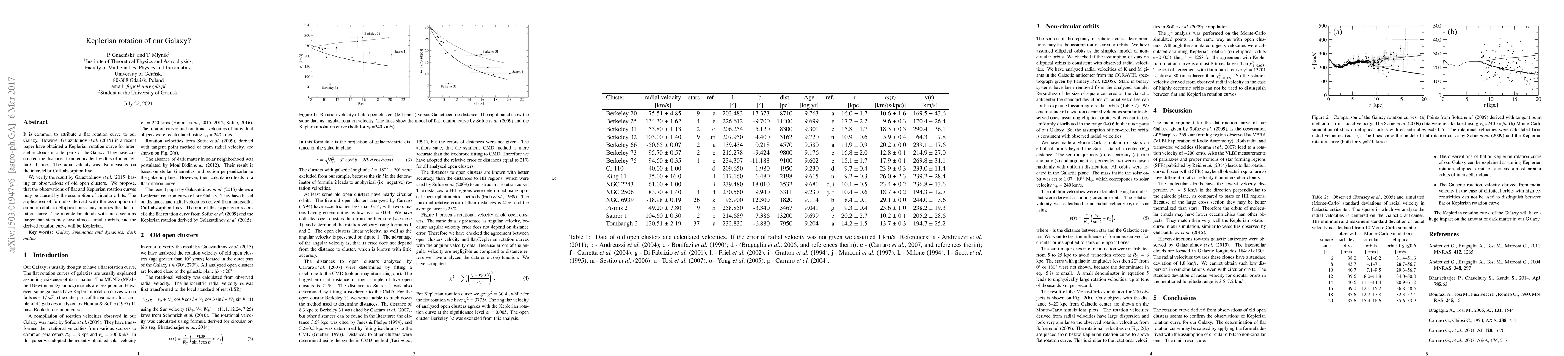 This paper verifies the Keplerian rotation curve observed by Galazutdinov et al. (2015) for interstellar clouds using old open clusters, suggesting that the assumption of circular orbits may lead to misinterpretations of galactic rotation curves. The study proposes that elliptical orbits, when analyzed with circular orbit assumptions, can mimic flat rotation curves.