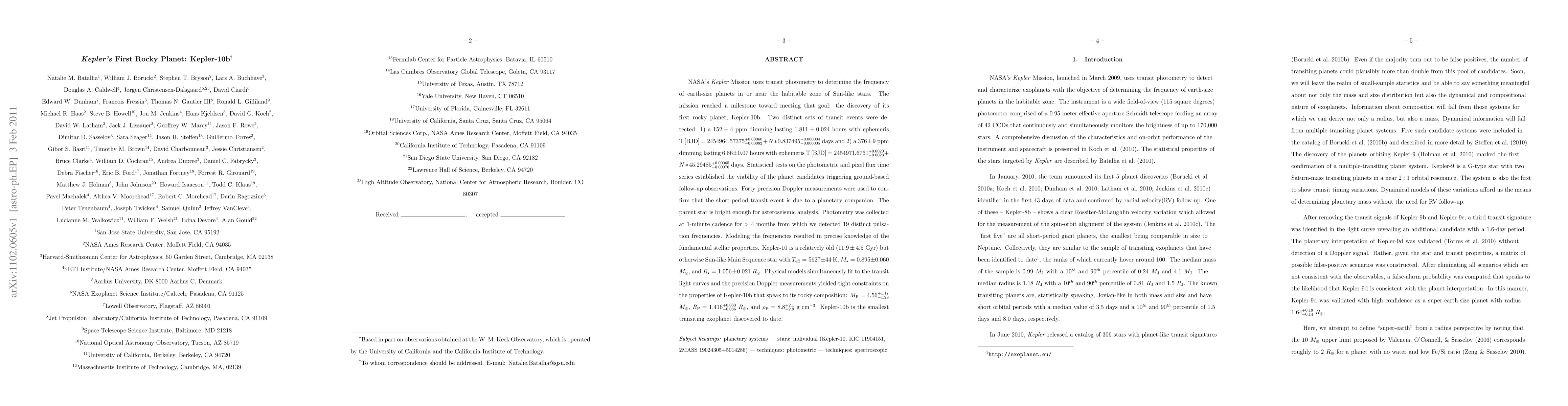 NASA's Kepler Mission discovered its first rocky exoplanet, Kepler-10b, using transit photometry. The planet exhibits a short orbital period and a dense, rocky composition, making it the smallest transiting exoplanet found to date.