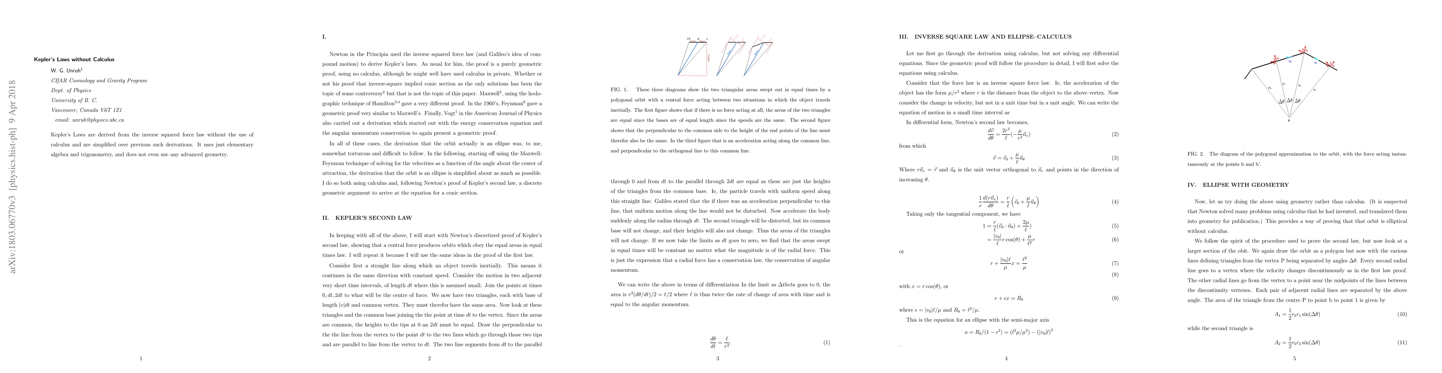 Kepler's laws are derived from the inverse square law without the use of calculus and are simplified over previous such derivations.