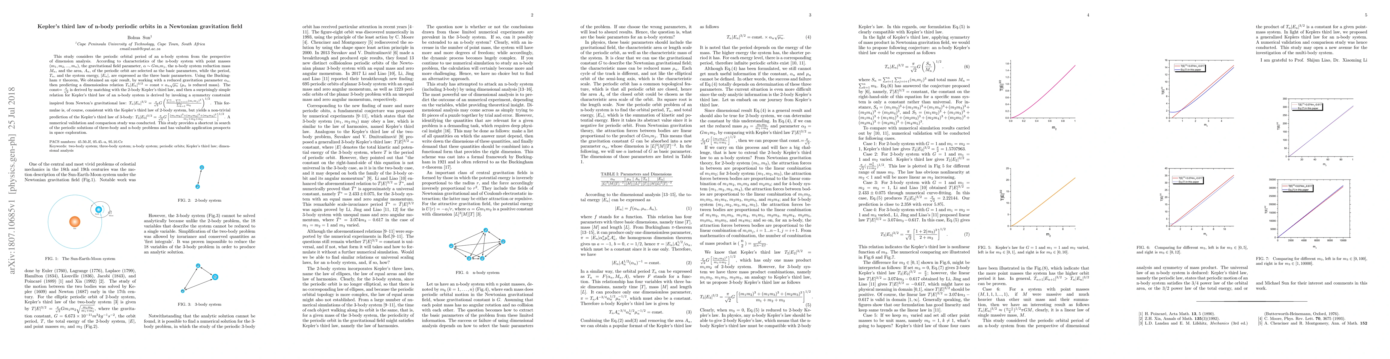 This study derives a dimensionless relation for Kepler's third law in n-body systems using the Buckingham π theorem, predicting $T_n|E_n|^{3/2}=\frac{\pi}{\sqrt{2}}G\left(\frac{\sum_{i=1}^n\sum_{j=i+1}^n(m_im_j)^3}{\sum_{k=1}^n m_k}\right)^{1/2}$ and validating it for the 3-body case. The method offers a simplified approach to periodic orbit solutions in space exploration.
