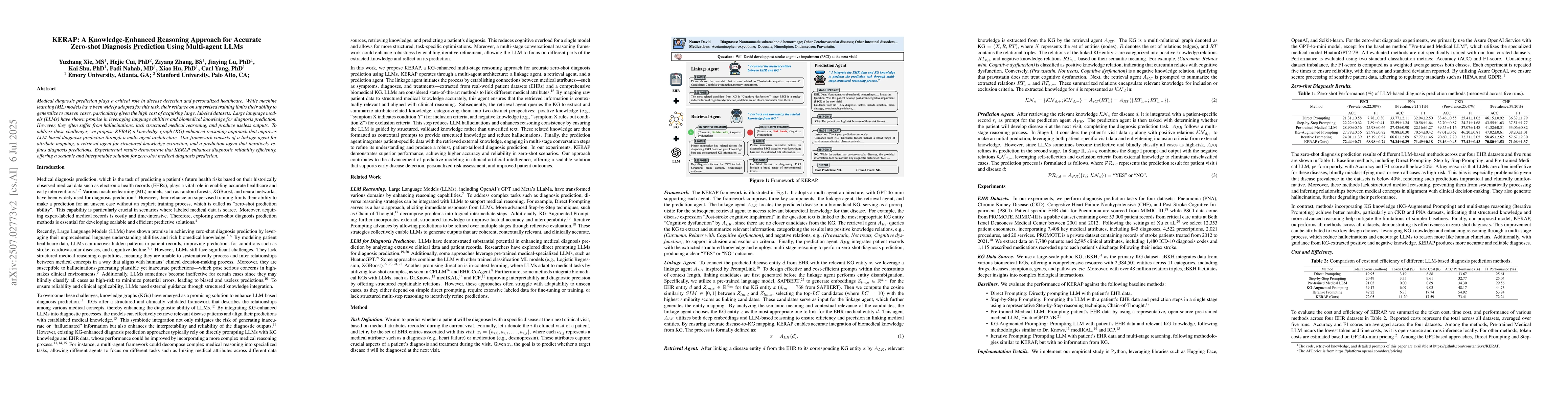Medical diagnosis prediction plays a critical role in disease detection and personalized healthcare. While machine learning (ML) models have been widely adopted for this task, their reliance on supervised training limits their ability to generalize to unseen cases, particularly given the high cost of acquiring large, labeled datasets. Large language models (LLMs) have shown promise in leveraging language abilities and biomedical knowledge for diagnosis prediction. However, they often suffer from hallucinations, lack structured medical reasoning, and produce useless outputs. To address these challenges, we propose KERAP, a knowledge graph (KG)-enhanced reasoning approach that improves LLM-based diagnosis prediction through a multi-agent architecture. Our framework consists of a linkage agent for attribute mapping, a retrieval agent for structured knowledge extraction, and a prediction agent that iteratively refines diagnosis predictions. Experimental results demonstrate that KERAP enhances diagnostic reliability efficiently, offering a scalable and interpretable solution for zero-shot medical diagnosis prediction.