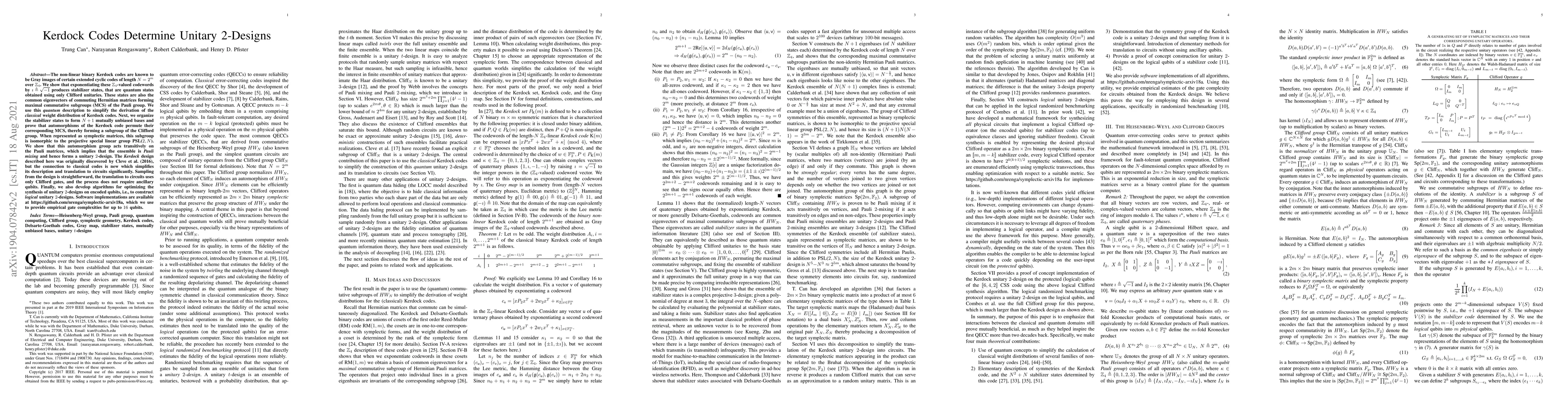 This paper demonstrates that non-linear binary Kerdock codes, which are Gray images of extended cyclic codes over $\mathbb{Z}_4$, produce stabilizer states via exponentiation, forming a unitary 2-design. The Kerdock design's automorphism group, represented as symplectic matrices, is isomorphic to the projective special linear group PSL($2,N$), ensuring Pauli mixing and simplifying the translation to Clifford circuits.