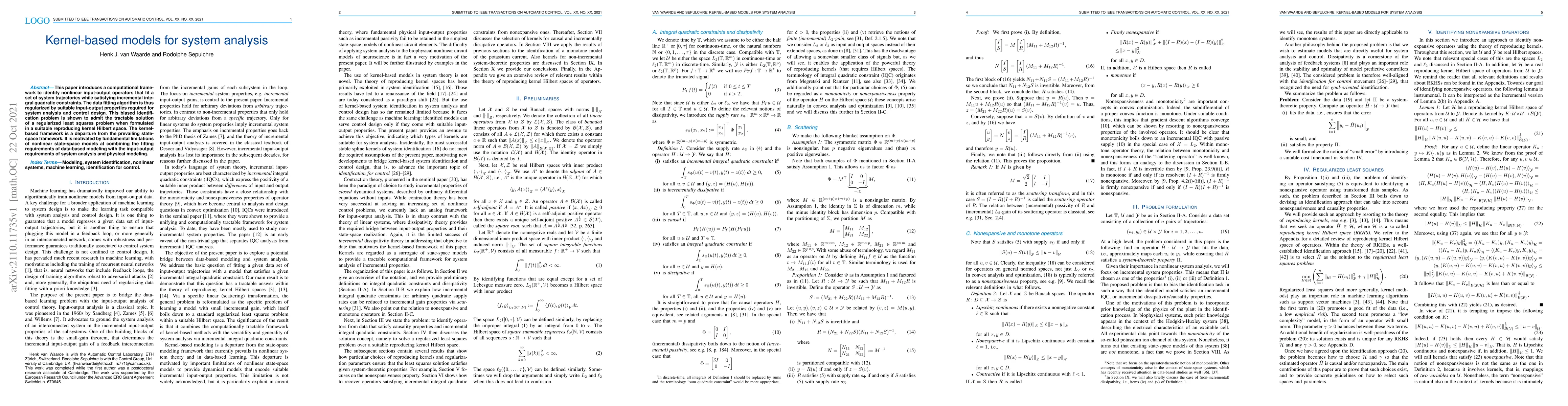 This paper introduces a computational framework to identify nonlinear input-output operators that fit a set of system trajectories while satisfying incremental integral quadratic constraints. The data fitting algorithm is thus regularized by suitable input-output properties required for system analysis and control design. This biased identification problem is shown to admit the tractable solution of a regularized least squares problem when formulated in a suitable reproducing kernel Hilbert space. The kernel-based framework is a departure from the prevailing state-space framework. It is motivated by fundamental limitations of nonlinear state-space models at combining the fitting requirements of data-based modeling with the input-output requirements of system analysis and physical modeling.