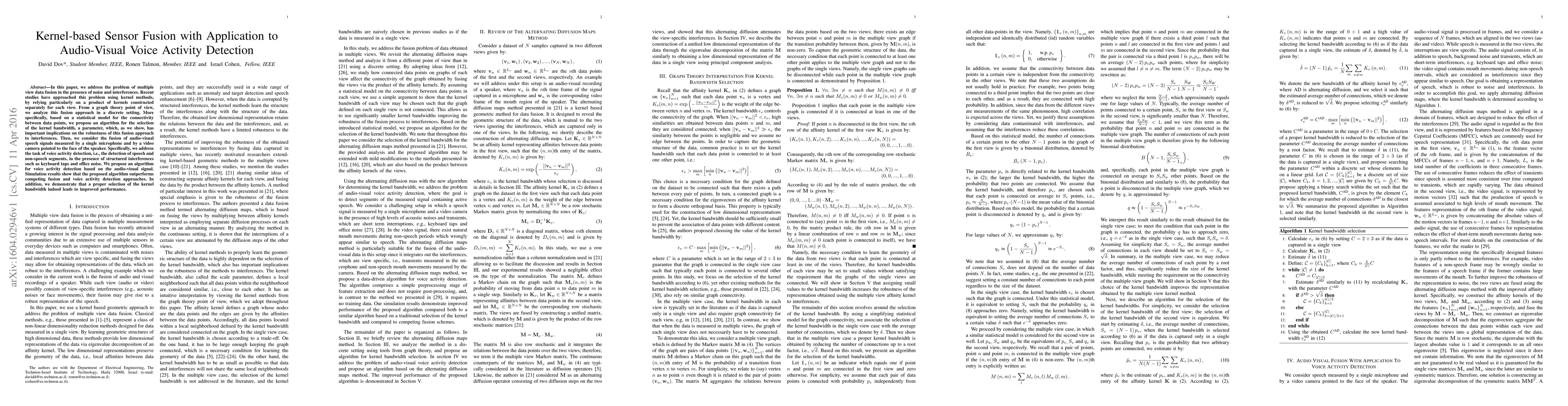 This paper proposes a kernel-based sensor fusion method for audio-visual voice activity detection, emphasizing the importance of kernel bandwidth selection for robustness against interferences. Simulation results show that the algorithm outperforms existing methods, highlighting the benefits of proper kernel bandwidth selection.