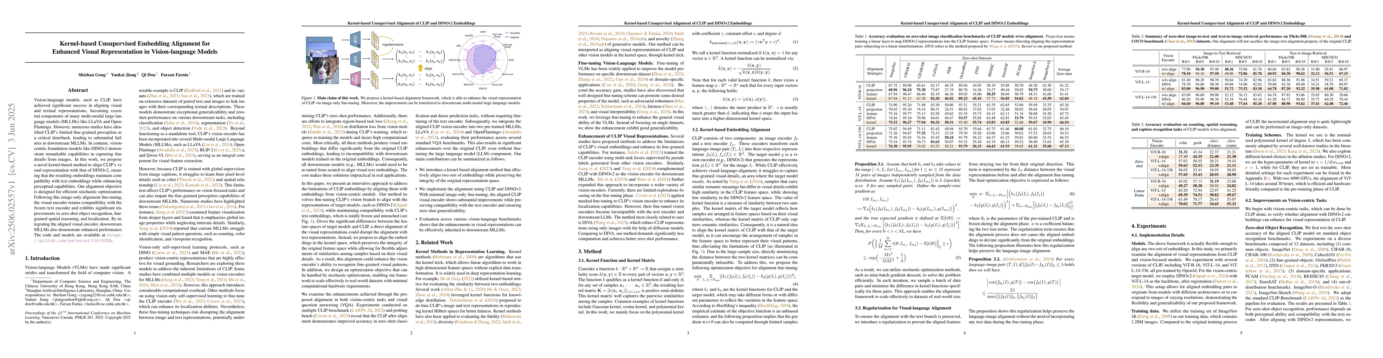 The research proposes a kernel-based unsupervised embedding alignment method to enhance visual representation in vision-language models, specifically aligning CLIP's visual representations with DINOv2's capabilities while maintaining text embedding compatibility.
