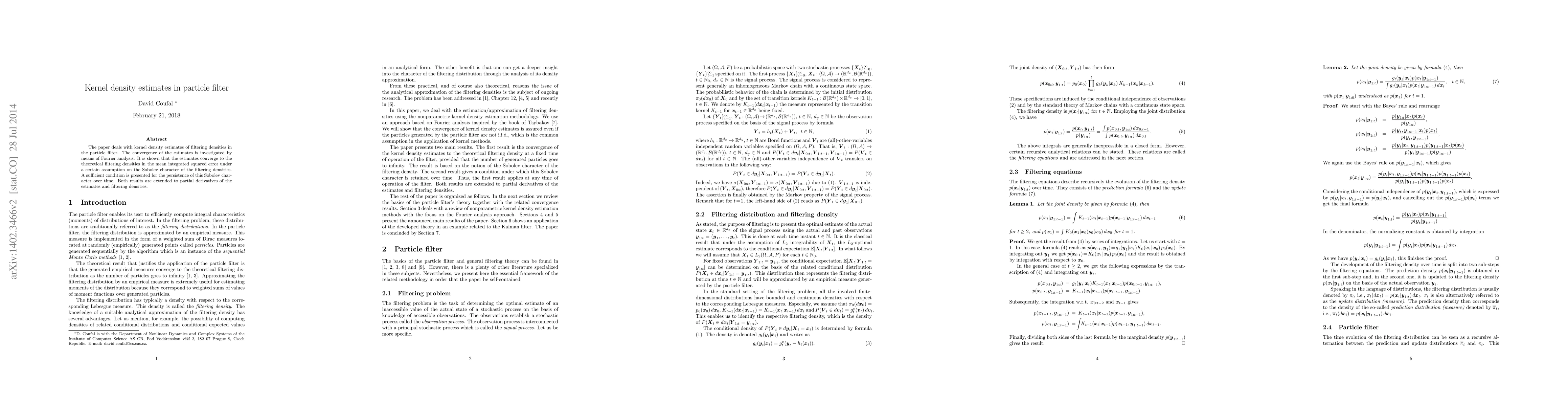 The paper deals with kernel density estimates of filtering densities in the particle filter. The convergence of the estimates is investigated by means of Fourier analysis. It is shown that the estimates converge to the theoretical filtering densities in the mean integrated squared error under a certain assumption on the Sobolev character of the filtering densities. A sufficient condition is presented for the persistence of this Sobolev character over time. Both results are extended to partial derivatives of the estimates and filtering densities.