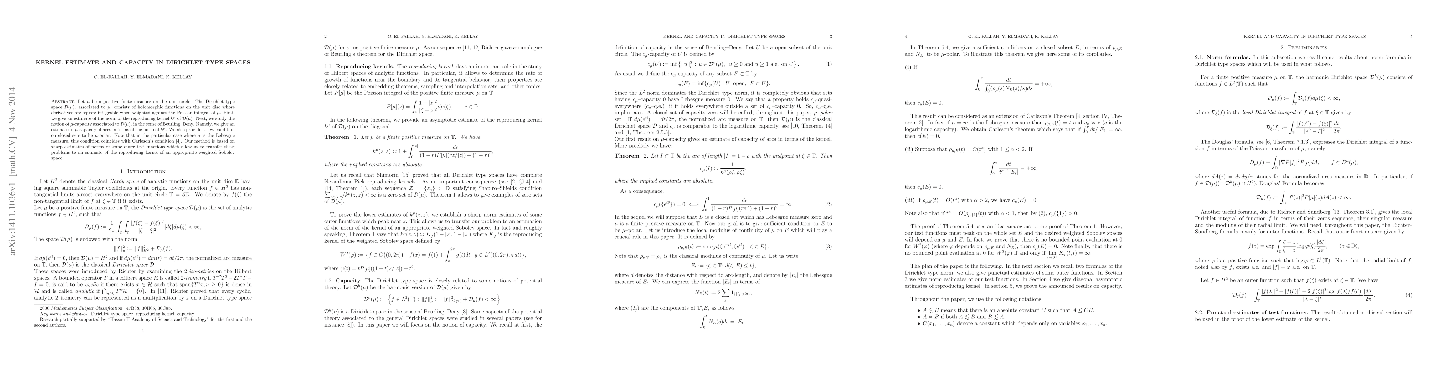 The research employs techniques from complex analysis, specifically focusing on Dirichlet type spaces, to estimate the norm of the reproducing kernel and study the capacity in these spaces. It uses sharp estimates of norms of outer test functions and transfers problems to an estimate of the reproducing kernel of an appropriate weighted Sobolev space.